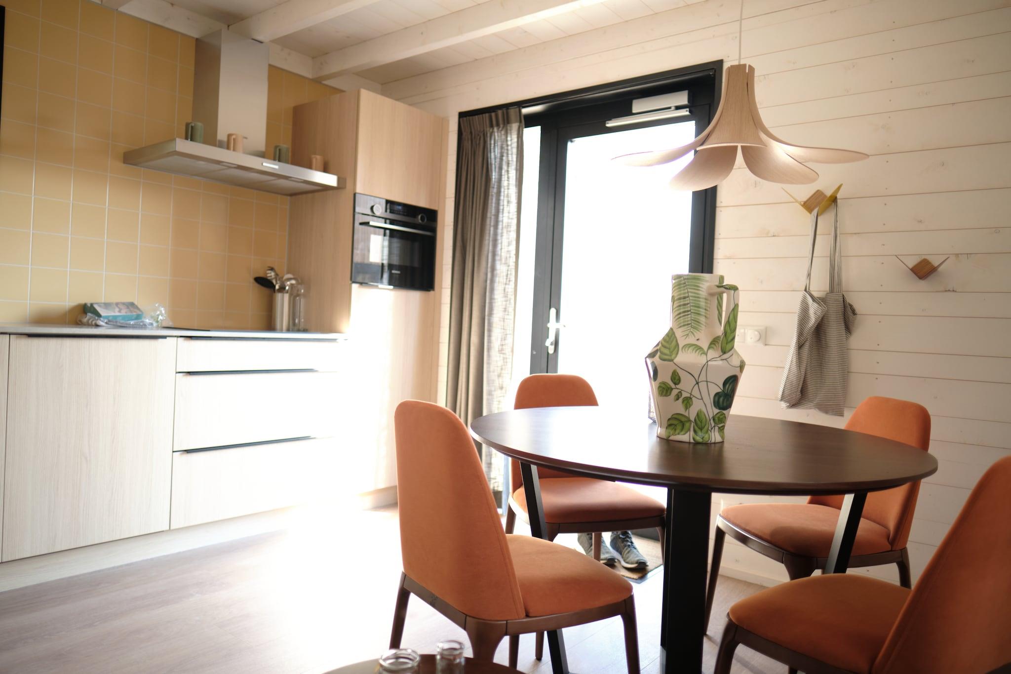 Et stilfuldt ophold med fantastisk udsigt over bakkerne Velkommen til din unikke bakkeoase i hjertet af Sydlimburg. Denne moderne, kubiske hytte i det bilfrie Resort Gulpen strækker sig over tre etager og tilbyder både plads og arkitektonisk flair. Store vinduer lukker naturligt lys ind og indrammer den betagende udsigt over det bølgende landskab. Indenfor finder du hyggelige opholds- og spiseområder, et fuldt udstyret køkken med opvaskemaskine og mikroovn samt to soveværelser med eget badeværelse – begge med komfortable boxspring-senge og brusekabiner, der giver et strejf af luksus i hotelstil. Kæledyrsvenlige eventyr i naturen Din firbenede ven er mere end velkommen her! Tag på naturskønne vandreture direkte fra feriestedet til Gulpenerberg-stierne, eller tag til det nærliggende Gerendal Naturreservat, hvor hunde kan løbe frit i snor blandt enge med vilde blomster. Stop ved lokale kæledyrsvenlige caféer som Brasserie Amuseer i Gulpen, hvor vandskåle og maveklap er en del af oplevelsen. Efter udforskningen kan din hund tage en lur ved siden af dig, mens du slapper af på din private terrasse. Charmerende spisesteder og lokale lækkerier Gulpens livlige centrum ligger kun få minutter væk og er fyldt med hyggelige spisesteder og lokal charme. Nyd håndbrygget øl på Gulpener Bierbrouwerij eller smag på solide Limburg-retter på Café Pieke Potloed. Uanset om du vandrer, spiser eller bare slapper af med dit kæledyr, tilbyder denne lodge den perfekte balance mellem stil, ro og forbindelse til Limburgs naturlige og kulinariske charme. Bemærk - Denne feriepark er fyrværkerifri ved nytår, hvor fyrværkeri af enhver art er forbudt. Parken foretager dog ikke aktive kontroller, så et fuldstændigt fyrværkerifrit miljø kan ikke garanteres. Der er mulighed for, at der affyres fyrværkeri i det omkringliggende område.