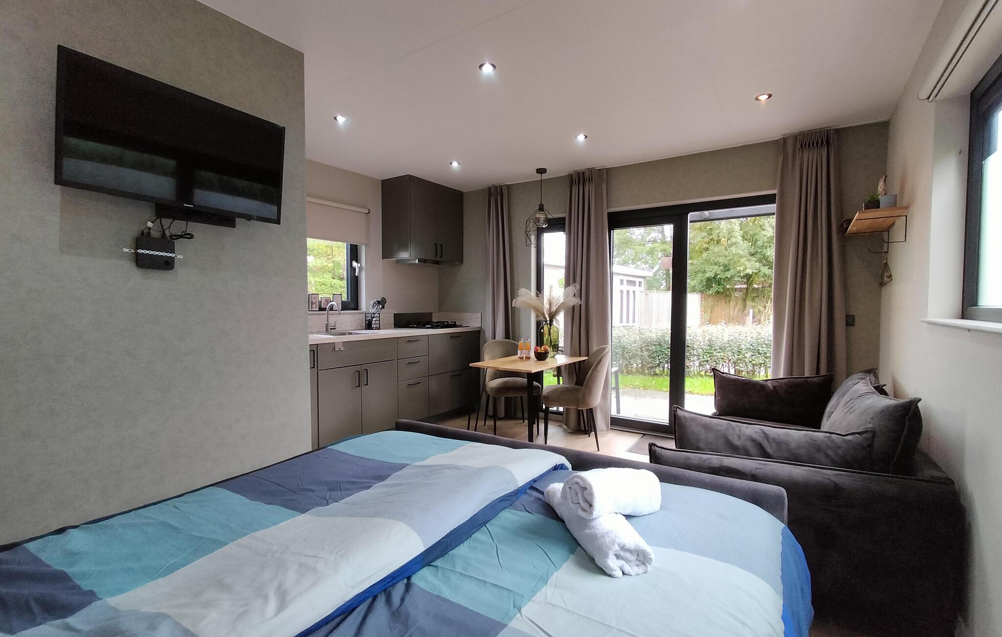 Under jeres ophold kan I benytte den opvarmede udendørspool med vandrutsjebane, børnebassin og liggeplæne – poolen kan benyttes mod et gebyr. I sommermånederne er der et spændende animationsprogram for børn. Parken har også en stor legeplads med fodboldbane. Lige ved siden af ferieparken kan I fiske i søen eller nyde en lækker ret på restauranten ved siden af.
