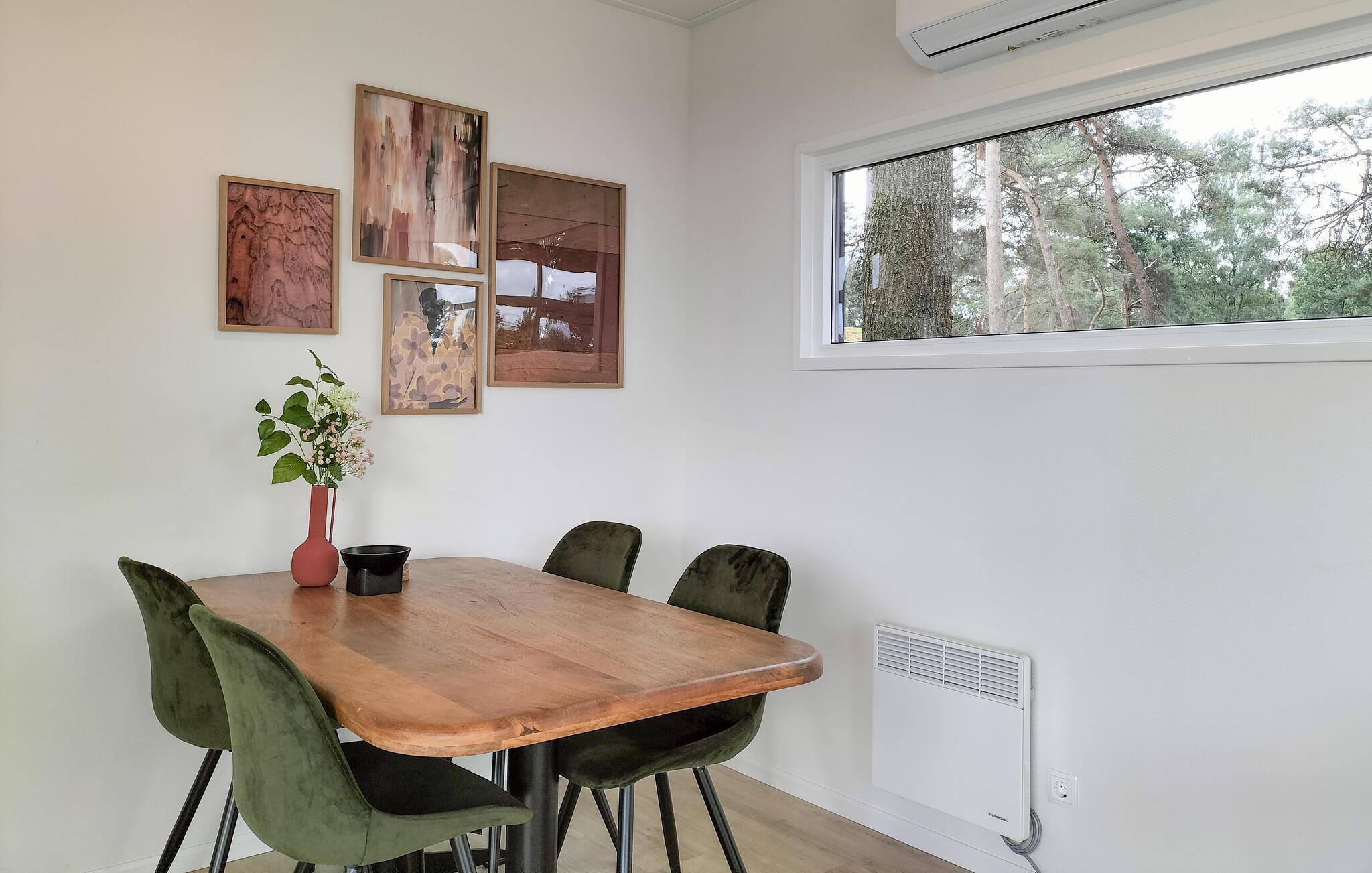 Oplev dette moderne feriehus i rolige omgivelser. Dette feriehus ligger i en lille skov, omgivet af smukke enge, på en feriepark i udkanten af Sallandse Heuvelrug Nationalpark og tæt på Hellendoorn Adventure Park. I umiddelbar nærhed finder I vidunderlige cykelstier og -stier, hvor I kan slentre og nyde de idylliske omgivelser. Glæd jer til jeres ophold i dette stilfulde feriehus. Vågn op om morgenen med en friskbrygget kop kaffe i stuen og planlæg jeres kommende dag. Saunaen tilbyder ren afslapning efter en begivenhedsrig dag. Nyd måltiderne sammen ved spisebordet, eller flyt dem udenfor og nyd solen, freden og den smukke udsigt over engene. Om aftenen kan I afrunde dagen med et godt glas vin på terrassen. Besøg Hellendoorn Adventure Park, som tilbyder spændende forlystelser og shows for børn og voksne. Og udforsk den smukke natur i Sallandse Heuvelrug Nationalpark, som byder på ideelle vandre- og cykelstier gennem et varieret landskab. Oplev det historiske centrum af Ommen, eller tag en dagstur til Zwolle, hvor I kan udforske de maleriske gader og interessante museer. Bemærk venligst: Ferieparken er i øjeblikket under opførelse, og der gøres alt for at minimere eventuelle gener.