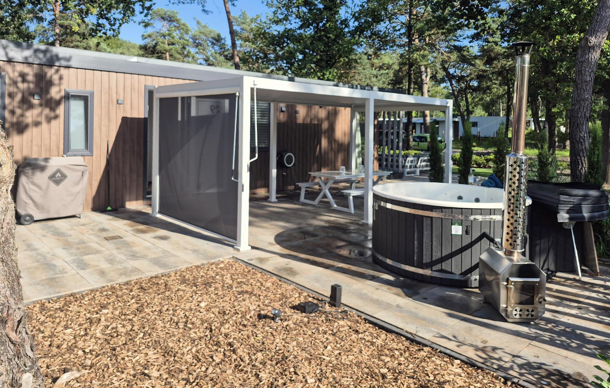 Fra opholdsområdet kan I gå direkte udenfor, hvor I kan bruge både solrige og skyggefulde områder, som I ønsker det. Find jer godt til rette på en liggestol, nyd et beroligende bad i vildmarksbadet eller tilbered en lækker udendørs-middag på grillen.