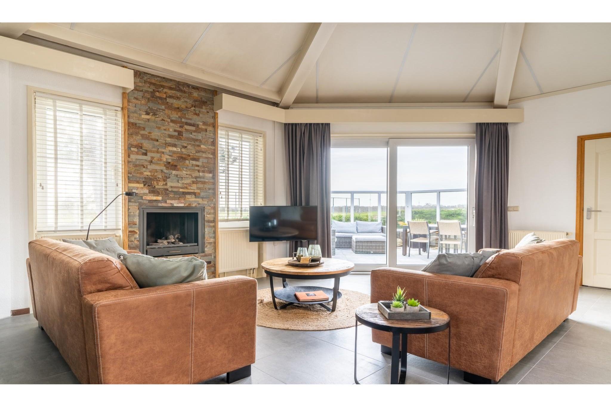 Dette skønne feriehus på Ameland er unikt beliggende direkte på golfbanen. Det ottekantede design og moderne indretning bidrager til en hyggelig atmosfære. Der er en rummelig solterrasse med møbler, hvor du kan nyde drinks og måltider. I den store have kan du læse en bog eller slappe af. Dette sted er ideelt til en ferie med familien. Cykler og e-cykler kan lejes i parken. Den hyggelige landsby Hollum ligger i gåafstand, og en gåtur til stranden er også nem at lave. Centrum er 3,5 km, hvor du kan shoppe for familien. Der er mange restauranter, hvor du kan nyde lækre retter. Kaffebaren ligger 1,5 km derfra. Naturcenter Ameland ligger 10 km derfra. Det komfortable opholdsområde er arrangeret omkring pejsen. Boligrummet er meget lyst på grund af vinduerne hele vejen rundt, ovenlysvinduet og den store skydedør. Det åbne køkken er fuldt udstyret. Din hund er velkommen mod et mindre gebyr.