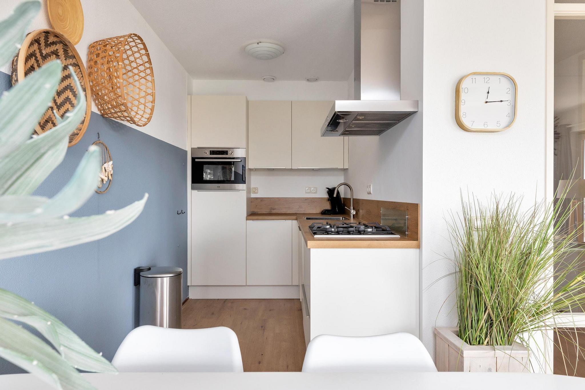 Velkommen til en smukt moderne indrettet lejlighed, der komfortabelt kan rumme op til fire gæster. Beliggende på første sal har dette dejlige tilflugtssted en balkon, hvor du kan nyde en fantastisk udsigt over klitterne. Stuen er varmt indrettet, hvilket skaber en hyggelig atmosfære forstærket af det rigelige naturlige lys fra skydedørene. Det åbne køkken er fuldt udstyret med alt hvad du behøver for at tilberede måltider under dit ophold. Med to indbydende soveværelser og et rummeligt badeværelse byder denne lejlighed på rigelig komfort for alle gæster. En vaskemaskine tilføjer til din bekvemmelighed. Hvis du leder efter en kystflugt, der byder dine lodne venner velkommen, er denne lejlighed det perfekte valg, der tillader op til to hunde. Nyd en afslappende ferie ved havet i denne stilfulde lejlighed!