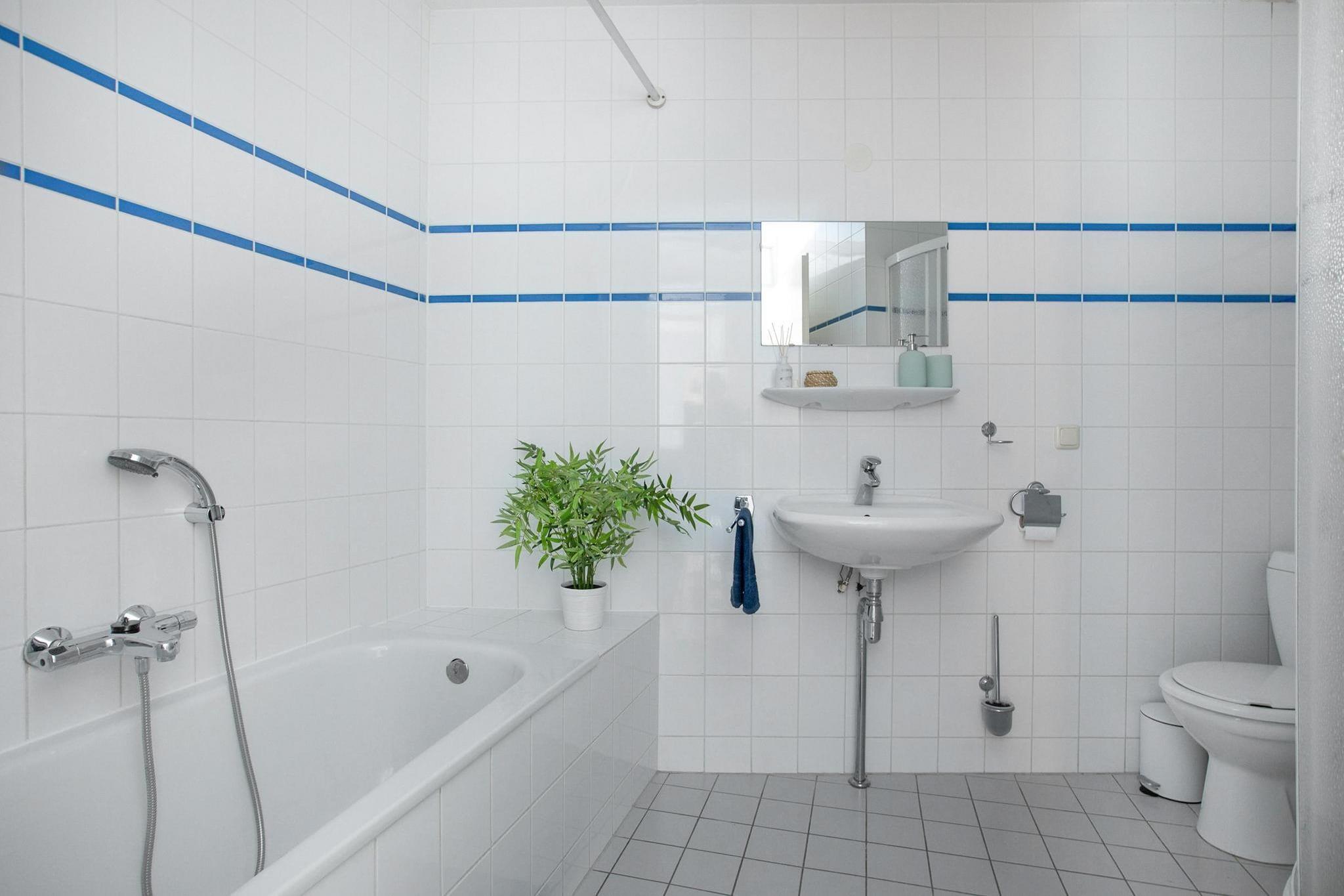 På 1. etage: (Stue(Fjernsyn(fladskærm), sofahjørne), åbent køkken(spisebord, kogeplade(Komfur med fire kogeplader, gas), elkedel, brødrister, emhætte, kaffemaskine(kaffetragt, kaffepude), combi-mikroovn, opvaskemaskine , køle-fryseskab, , ), soveværelse(dobbeltseng), soveværelse(enkeltseng, enkeltseng), badeværelse(bruser, håndvask, toilet)) Internetadgang, tørretumbler, vaskemaskine, balkon, varme(central), terrasse, havemøbler, parkering