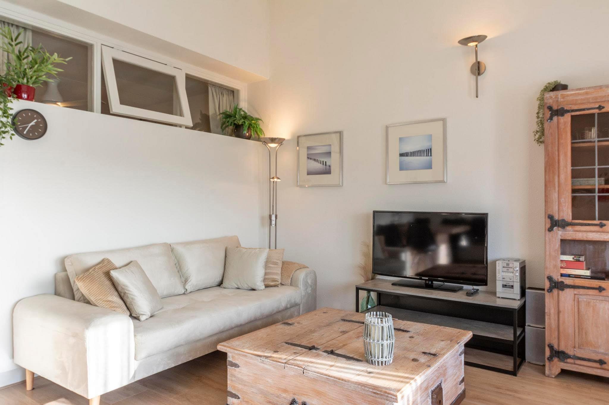 Velkommen til din perfekte ferie! Denne smukt indrettede ferielejlighed tilbyder et fredeligt tilflugtssted for to. Beliggende på tredje sal er det fyldt med naturligt lys takket være de franske døre, der åbner ud til en charmerende fransk altan med en dejlig udsigt. Det rummelige opholdsområde giver en varm, hyggelig atmosfære, ideel til at slappe af efter en dag på stranden. Spisepladsen har komfortabel plads til fire, perfekt til at nyde måltider sammen eller være vært for venner. Køkkenet er fuldt udstyret, så det er både nemt og behageligt at lave mad. Der er et indbydende soveværelse, og en sovesofa i stuen tilbyder ekstra soveplads, hvis det er nødvendigt. Dette gør lejligheden perfekt ikke kun for par, men også til en lille familieferie. Denne strandferie ligger kun 1,2 km fra havet og byder på kystlivets ro og charme. Bemærk venligst: kæledyr er ikke tilladt i lejligheden. Book din romantiske kystflugt i dag!