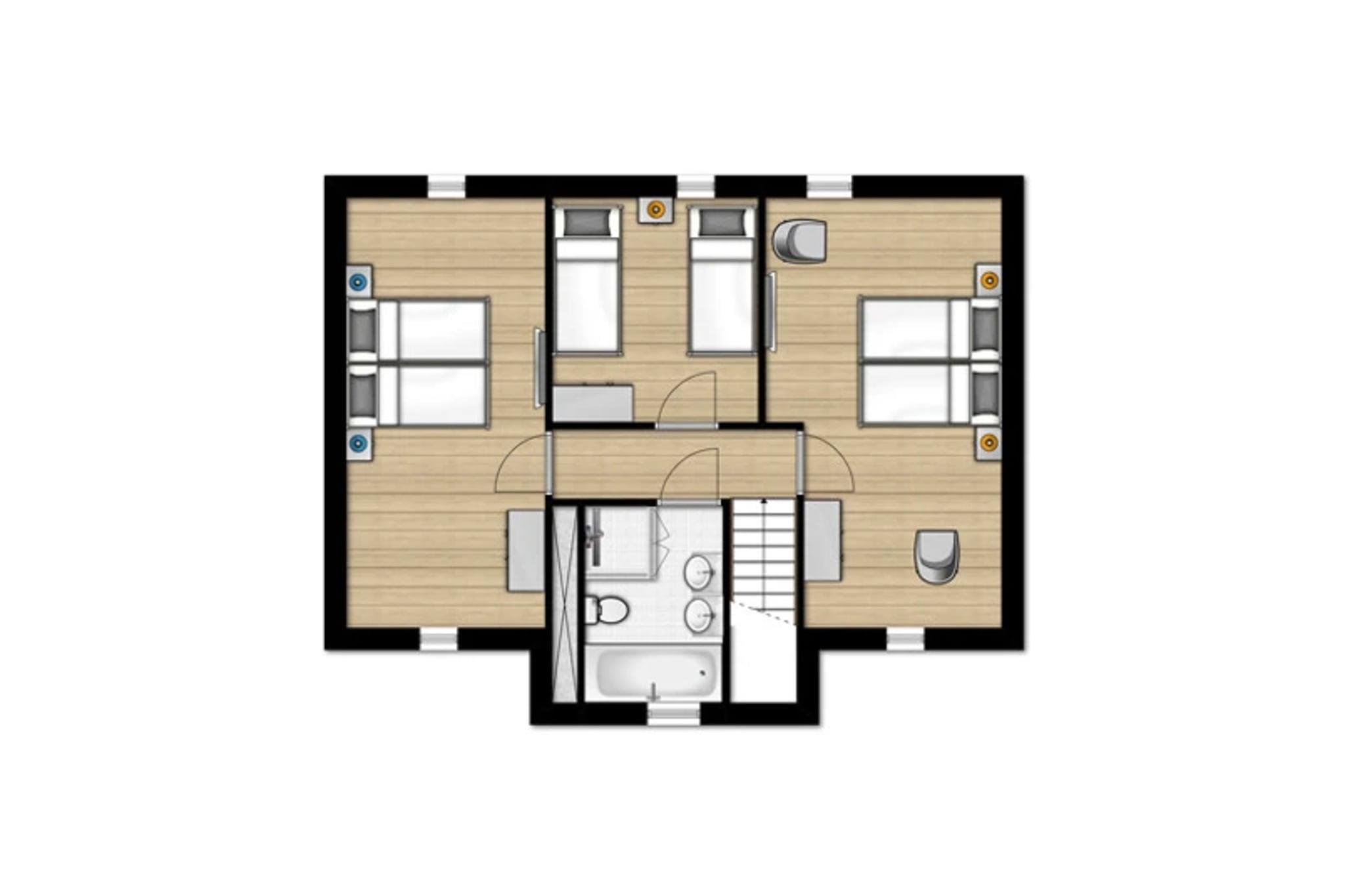 Stueetage: (entre(toilet), Stue(Fjernsyn), åbent køkken(elkedel, kaffemaskine(kaffepude), combi-mikroovn, opvaskemaskine , køle-fryseskab), badeværelse(bruser, sauna, håndvask), pulterkammer) På 1. etage: (soveværelse(2x enkeltseng(boxmadras)), soveværelse(2x enkeltseng(boxmadras)), soveværelse(2x enkeltseng(boxmadras)), badeværelse(badekar, håndvask), Repos) havedøre, terrasse, have, havemøbler, solstole, parkering