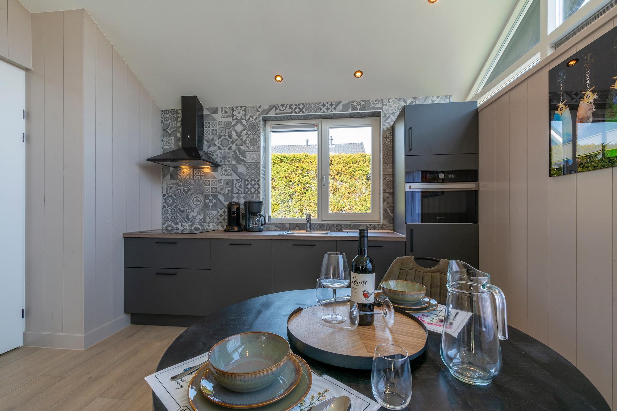 Køkken(kogeplade(Komfur med fire kogeplader, induktion), emhætte, kaffemaskine(kaffetragt), combi-mikroovn, mikrobølgeovn, opvaskemaskine , køle-fryseskab, , ), stue / spisestue(Fjernsyn(fladskærm, Smart-TV), spisebord, sofahjørne), soveværelse(dobbeltseng(90 x 200 cm)), badeværelse(badekar, bruser, toilet), toilet(toilet), sauna, Internetadgang, Havemøbler, varme(central), terrasse, have, cykelopbevaring, parkering, parkering, liggestole, Parasol, Ladestation til el-biler