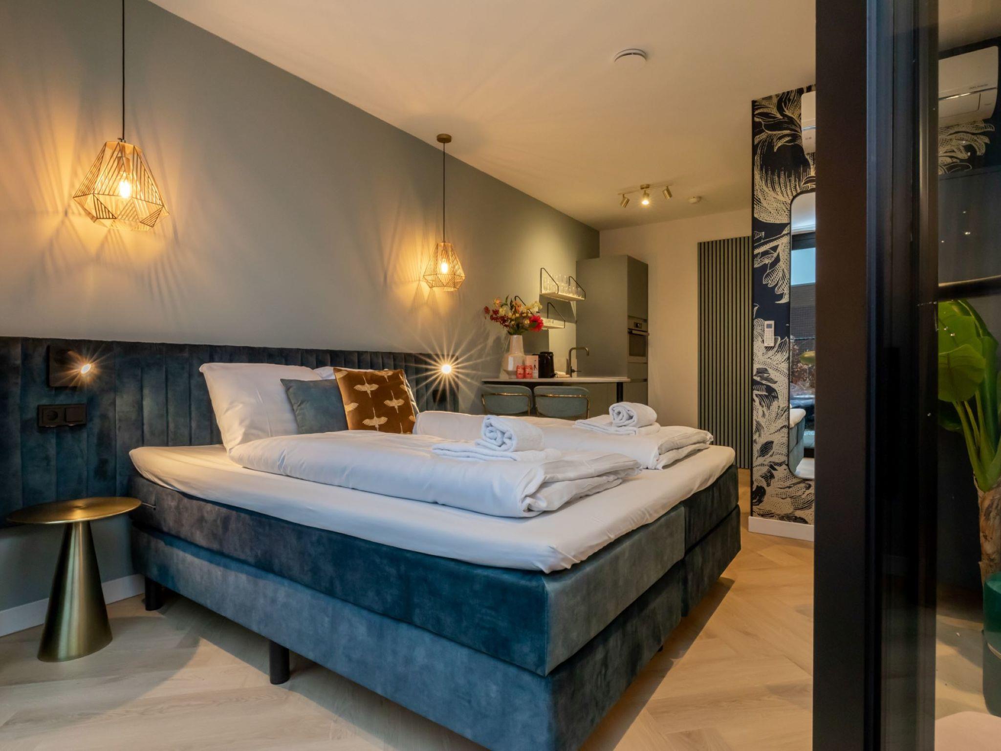 "Zee", 1-room studio 22 m2. Comfortable furnishings: living/sleeping room with 1 double bed (180 cm, length 210 cm), TV. Exit to the terrace. Small kitchen (dishwasher, kettle, electric coffee machine, combination microwave) with bar. Shower/WC. Heating, air-conditioning. Terrace 10 m2, south facing position. Terrace furniture. Facilities: Internet (WiFi, free). Parking (1 car) at the house. Please note: not suitable for children under 2 years. Non-smoking house. Smoke alarm. There is no hob in the kitchen.