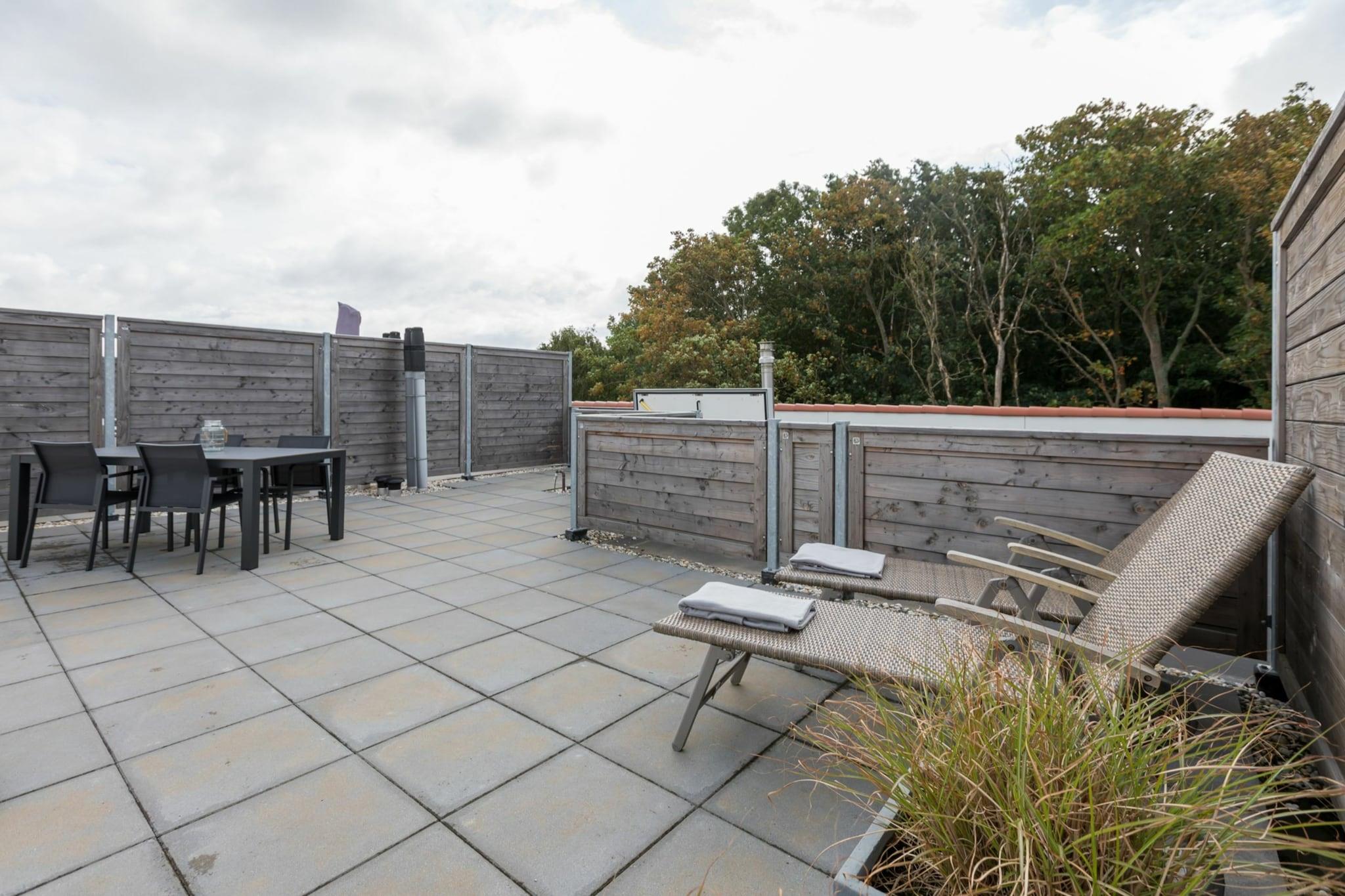 Du finder denne attraktive 6-personers lejlighed et enestående sted ved foden af Dishoek klitkryds. Lejligheden er fuldt udstyret til en ubekymret ferie og har en rolig beliggenhed i naturen. Om et par minutter (250 meter) er du på den smukke sydlige strand. Lejligheden (153 m2 inklusive terrasser) har tre soveværelser på første sal, et luksuriøst badeværelse med solbruser, en stor stue med gaskamin, balkon (8 m2), et moderne fuldt udstyret køkken med spiseplads, der er også et separat vaskerum med vaskemaskine og tørretumbler. På anden sal er der en stor tagterrasse (42 m2) med udsigt over klitterne, hvor du kan nyde solen. Lejligheden har også sin egen parkeringsplads. Parkeringshuset er udstyret med en ladestation til elbiler (New motion). Dishoek er kendt for sin venlige atmosfære og hyggelige terrasser. Den ligger på øen Walcheren, et stenkast fra Middelburg, Vlissingen og Zoutelande. Elskere af vand sport kan surfe eller sejle på Nordsøen, kan Veerse Meer eller den vestlige Scheldt.The historiske by Veere og den monumentale by Middelburg nås med bil eller cykel.