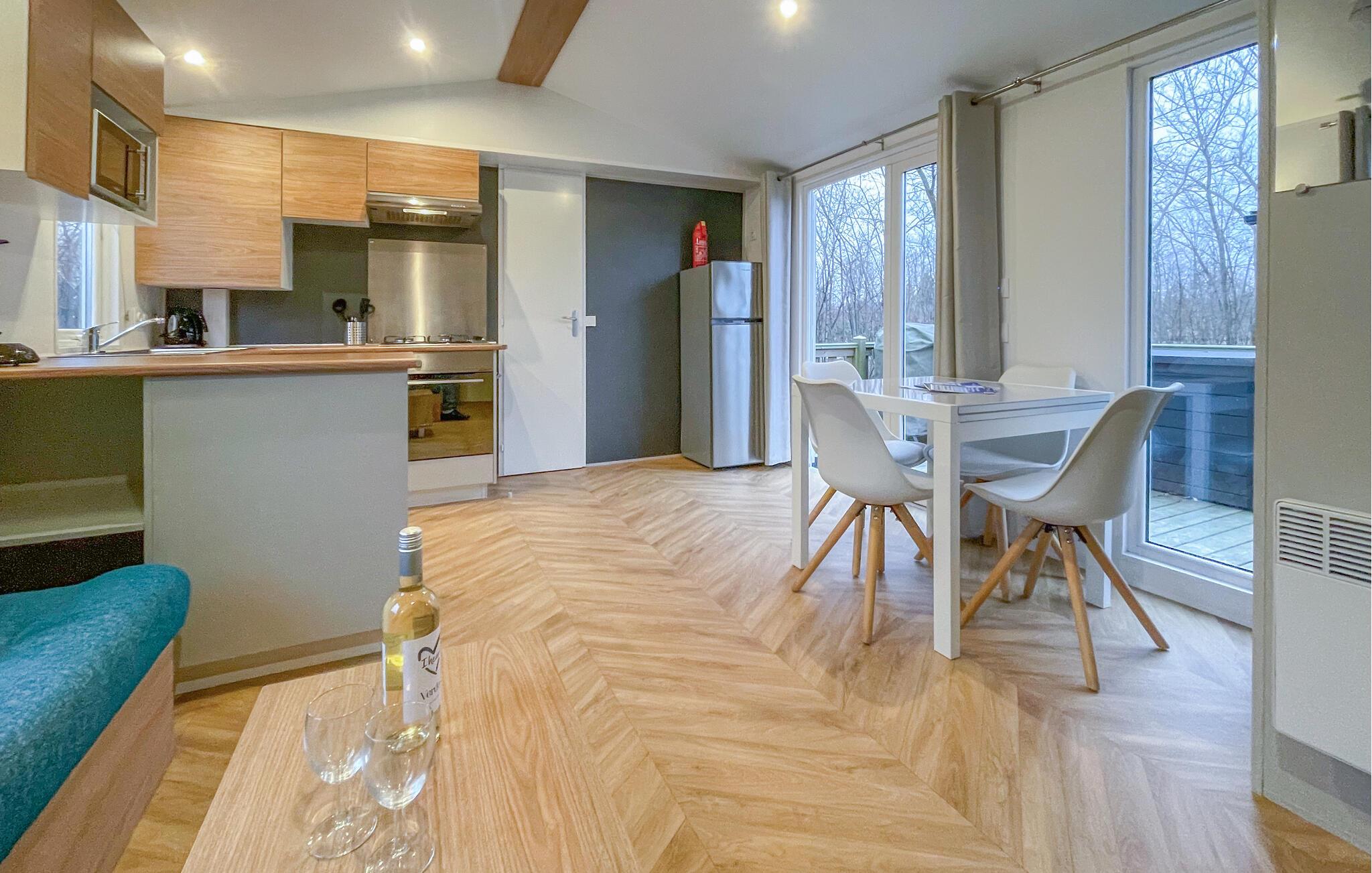 Glæd jer til et afslappende ophold i jeres moderne mobilehome i Lauwersoog. Omgivet af Lauwersmeer Nationalparks imponerende natur tilbyder dette feriehus de ideelle rammer for afslappende dage. Det smagfuldt designede opholdsområde lægger op til at nyde tid sammen med familien. I kan tilberede jeres lækre retter i det veludstyrede køkken og derefter nyde dem i godt selskab ved det hyggelige spisebord.