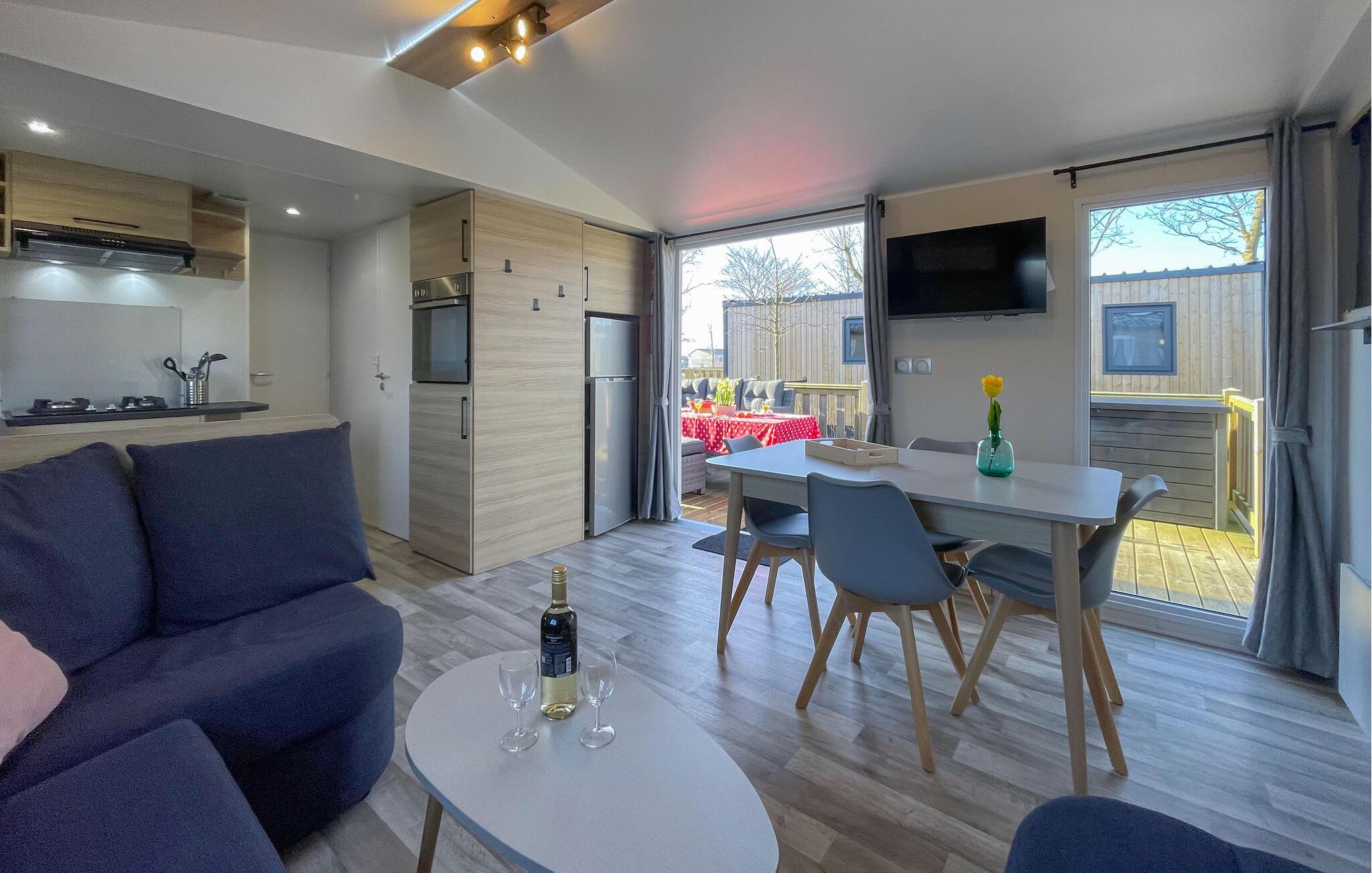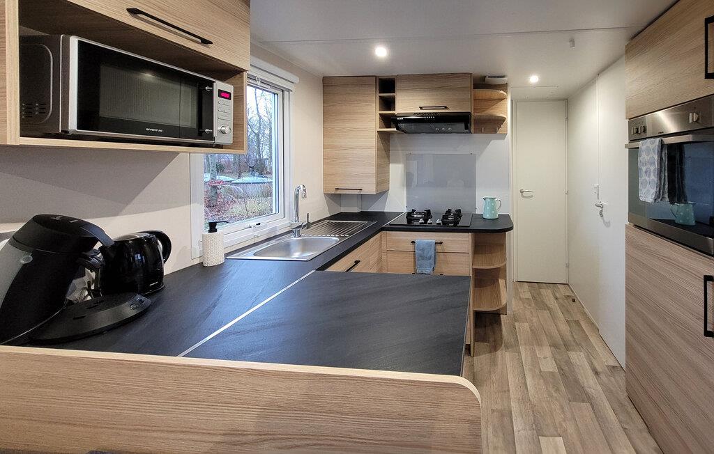 En afslappende ferie venter jer i jeres moderne hytte med aircondition i Lauwersoog. Omgivet af det idylliske landskab i Lauwersmeer Nationalpark, dette hus lægger op til uforglemmelige dage. Den stilfuldt indrettede opholdsstue byder på plads nok til hyggelige timer med familien. Det praktisk udstyrede køkken giver jer mulighed for at tilberede jeres lækre retter og derefter nyde dem sammen ved det indbydende spisebord.