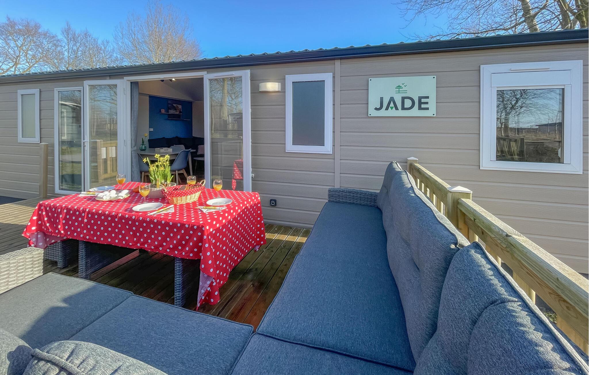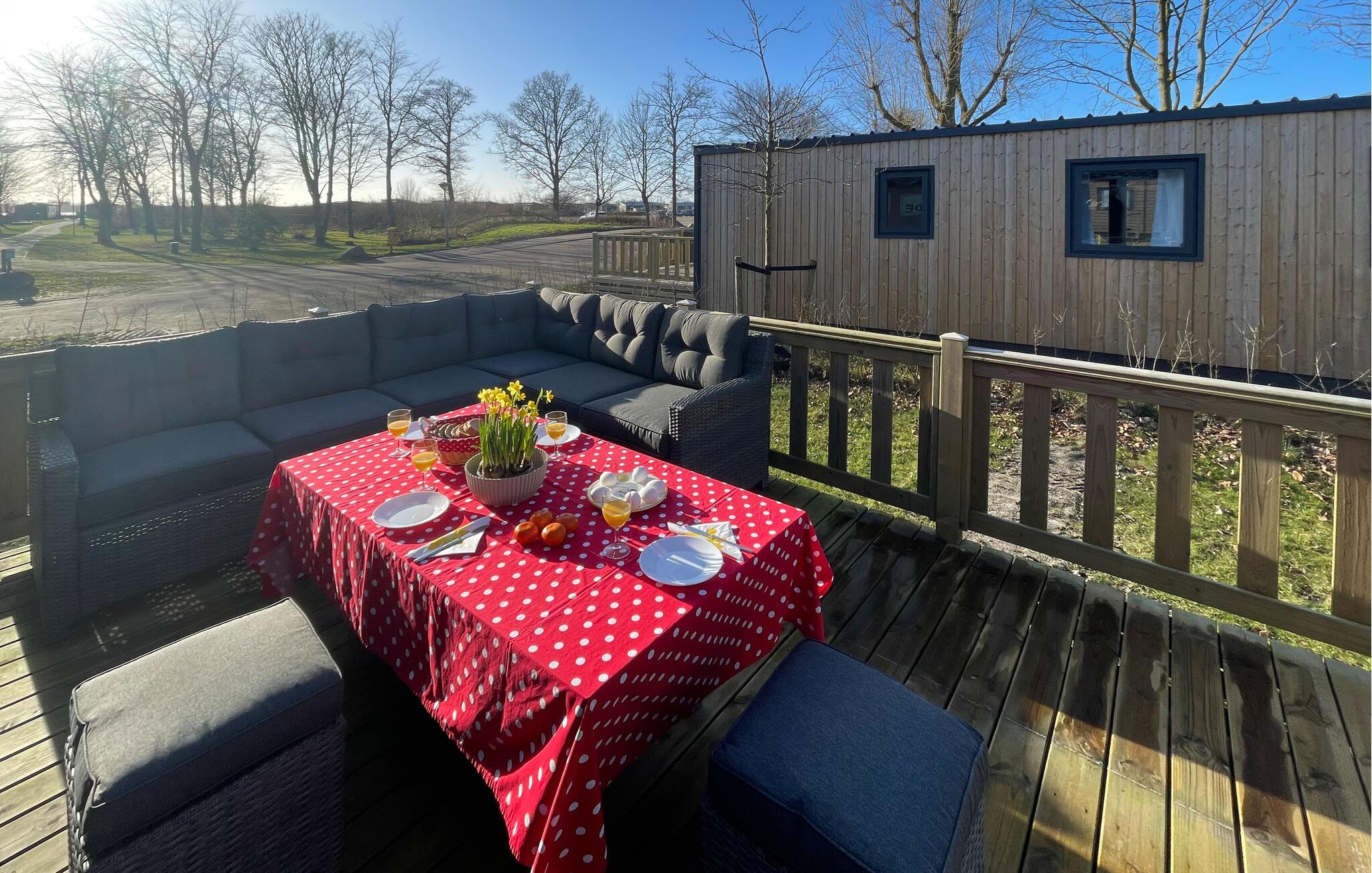 På den rummelige træterrasse kan I nyde solen, slappe af med en kop kaffe eller afslutte aftenen med udsigt til de maleriske omgivelser.