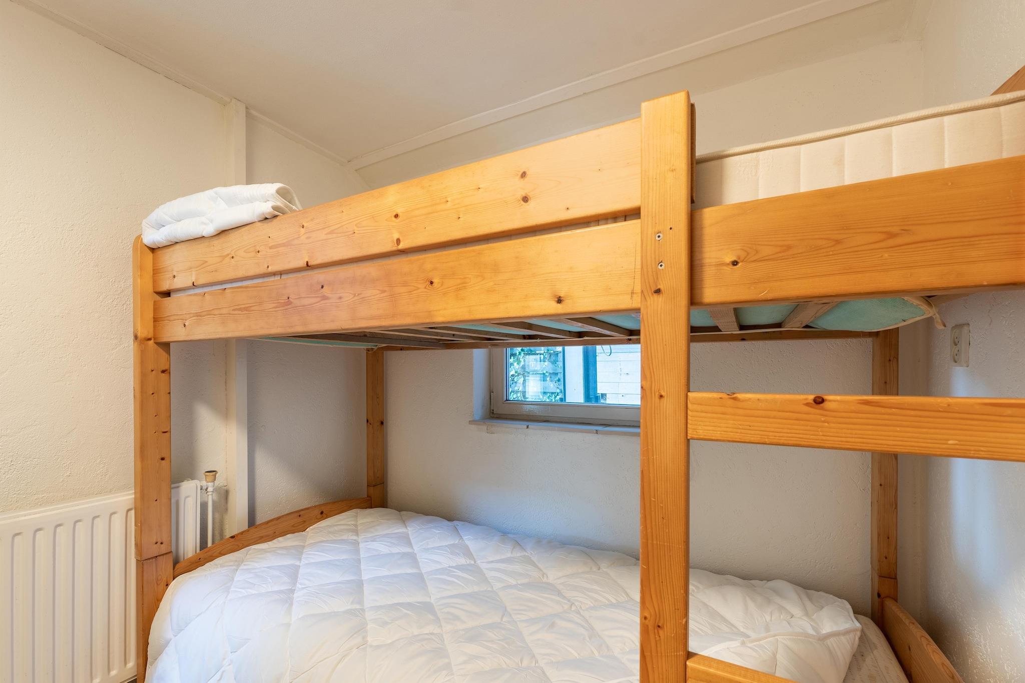 Stueetage: (entre, åbent køkken(kogeplade(induktion), elkedel, kaffemaskine, mikrobølgeovn, opvaskemaskine , køleskab(+ fryser)), stue / spisestue(Fjernsyn(Smart-TV), spisebord, sofahjørne), soveværelse(dobbeltseng), soveværelse(dobbelthøjseng), badeværelse(bruser, håndvask), toilet(toilet), pulterkammer) havemøbler, parkering