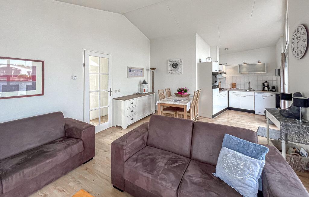 De moderne og smukke møbler skaber en behagelig atmosfære til en skøn og afslappende ferie. Den åbne stue med store vinduespartier giver jer en vidunderlig udsigt over vandet og det omkringliggende område. Smid jer i sofaerne, se en film om aftenen eller få læst nogle sider en ny roman. Og når aftenen nærmer sig, kan I gå i det moderne køkken og lave skønne måltider til hele familien.