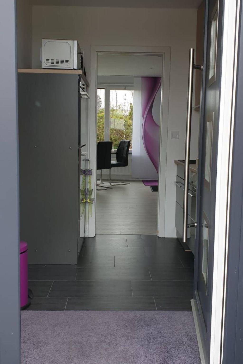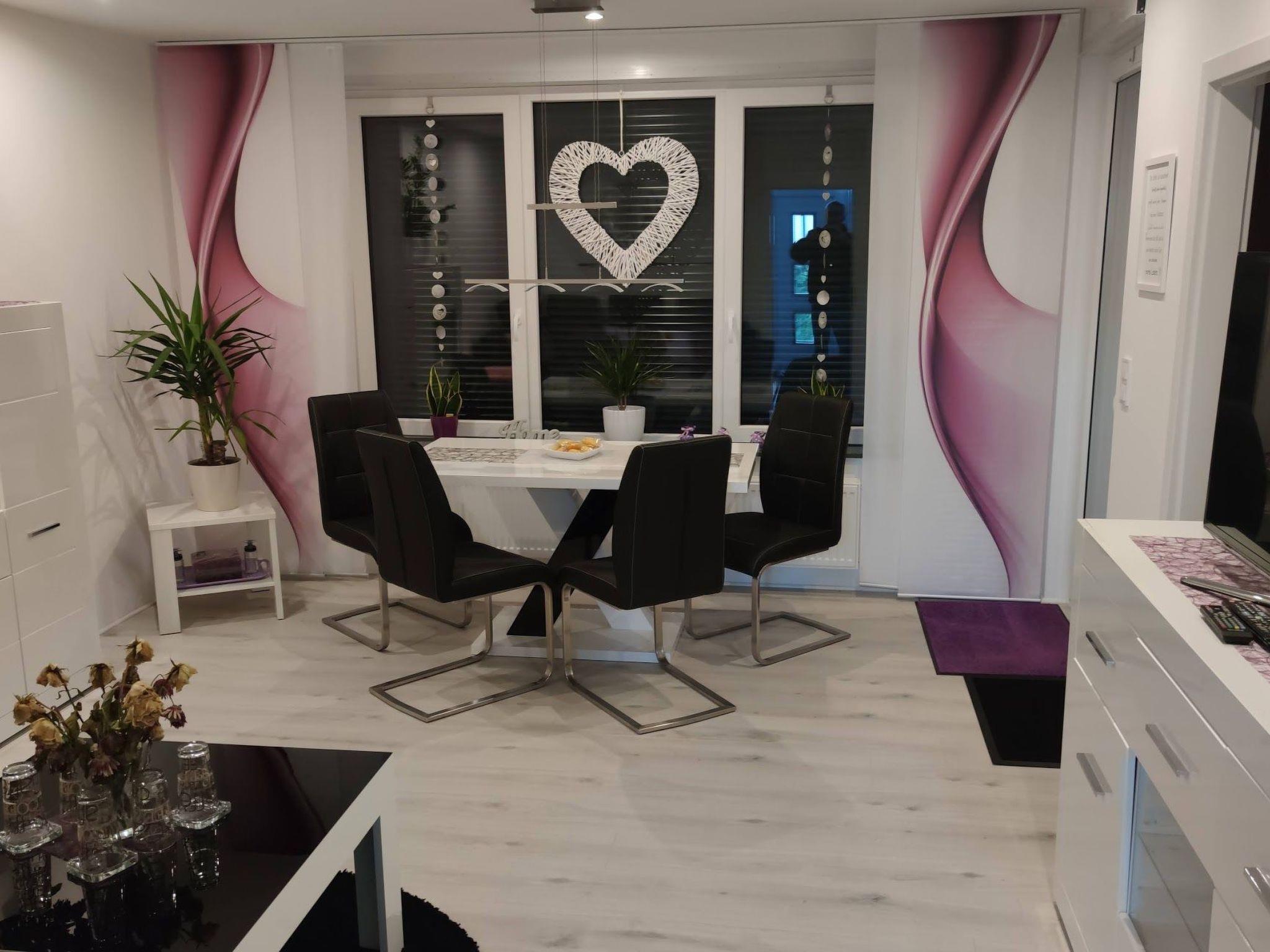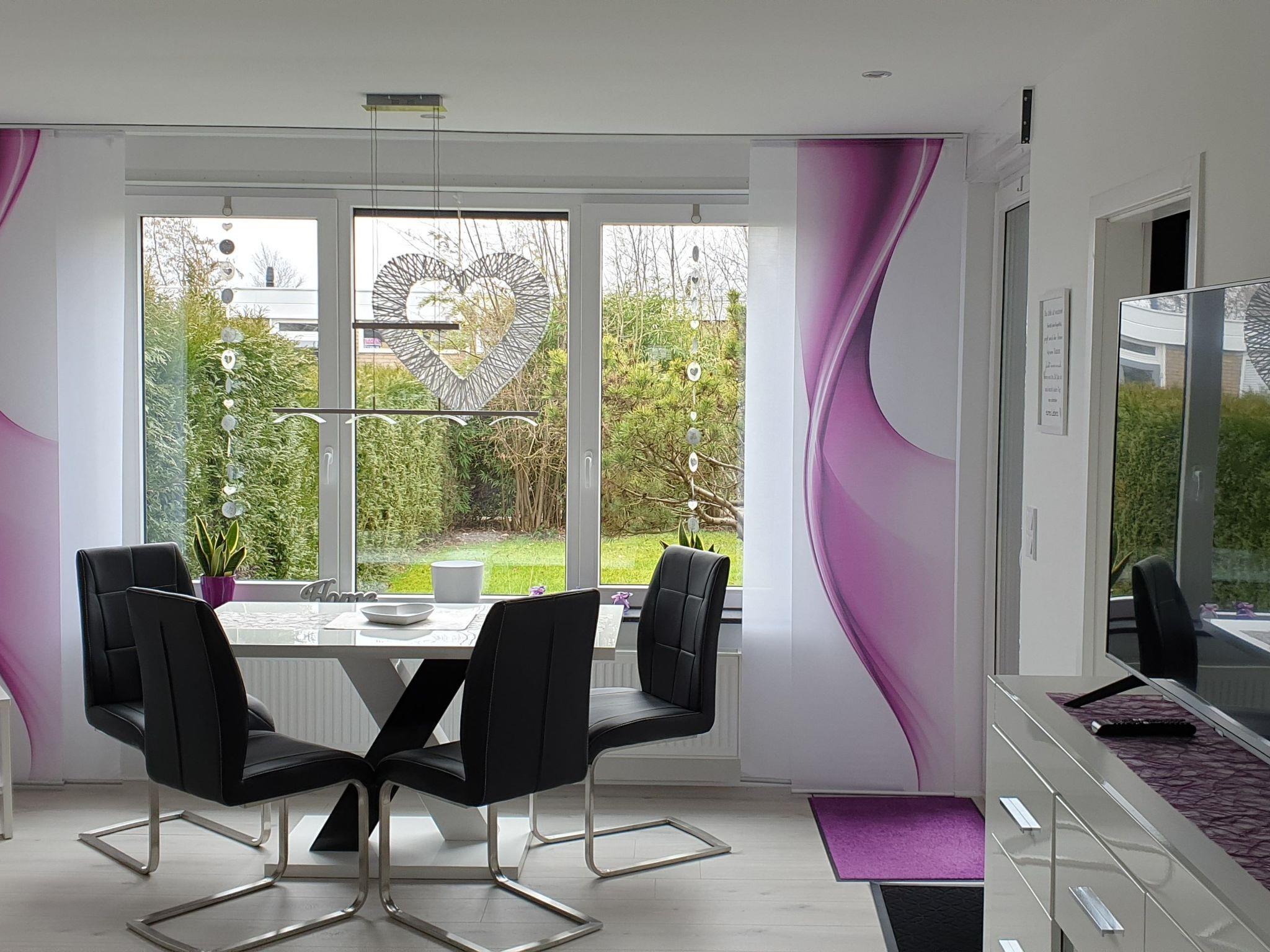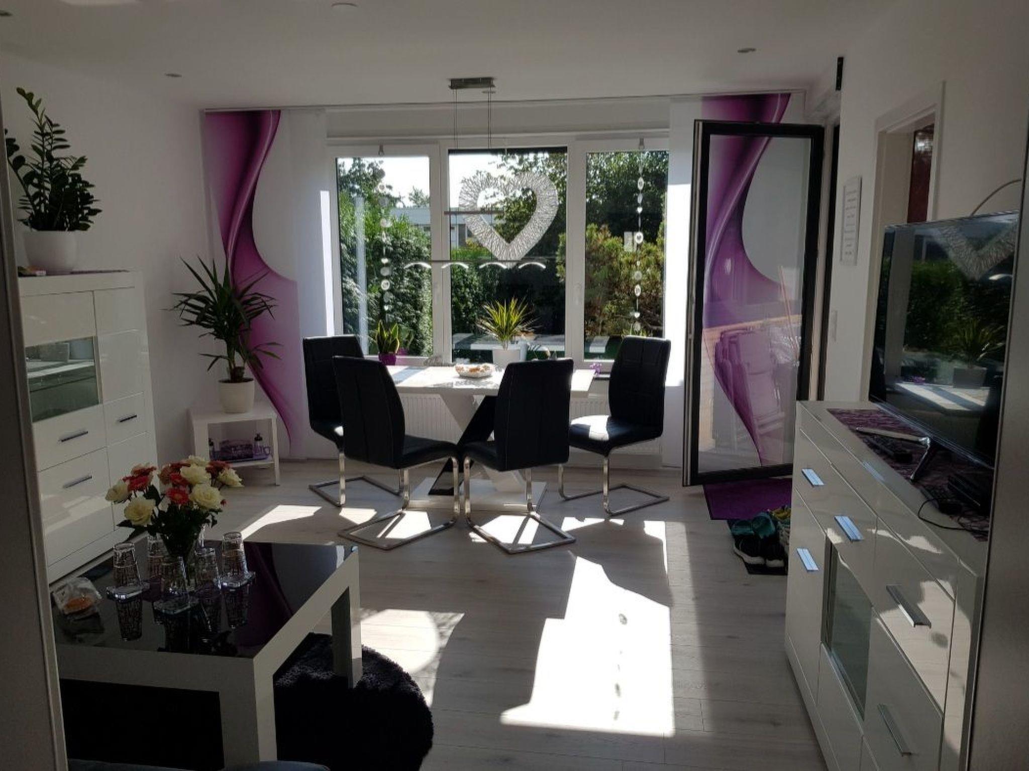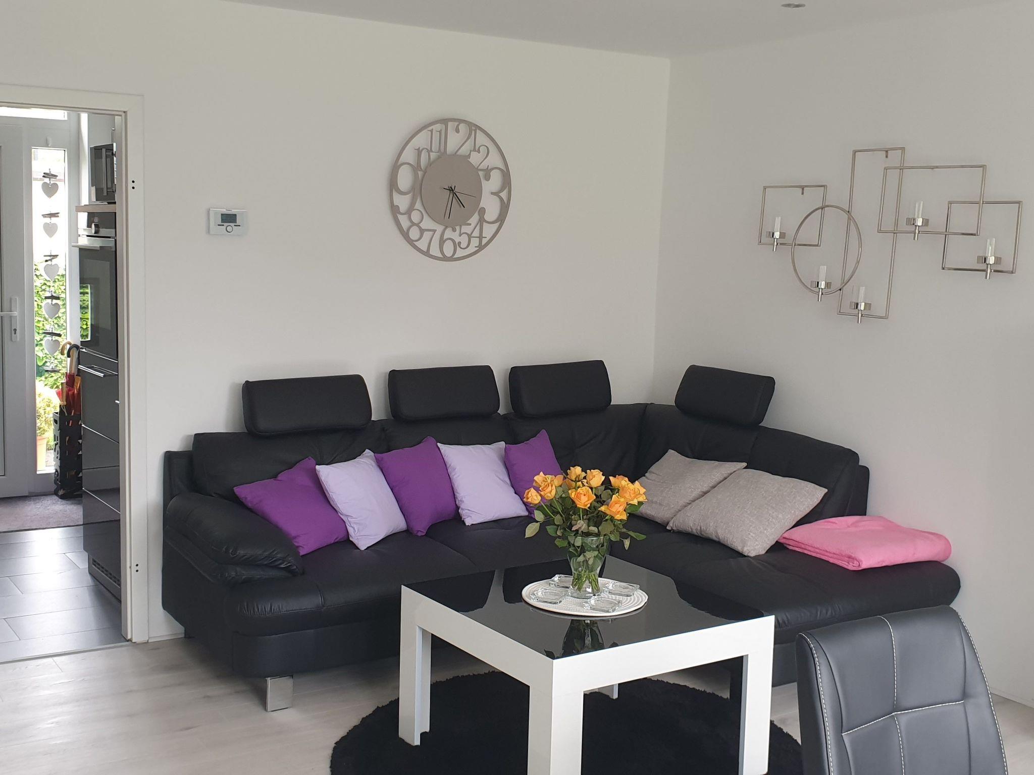 Inside, you will find a stylishly furnished living/dining room with dining table, chairs, a cosy sofa and armchairs, complemented by a flat-screen TV on a sideboard. The fully renovated kitchen from 2020 is equipped with modern appliances such as a ceramic hob, oven, fridge/freezer, dishwasher and microwave, as well as a coffee machine, kettle, toaster and various cooking utensils. There are also two lovingly designed bedrooms with double beds, wardrobes and bedside tables. A modern bathroom with shower, WC, washbasin, washing machine, towel radiator and hairdryer completes the interior.