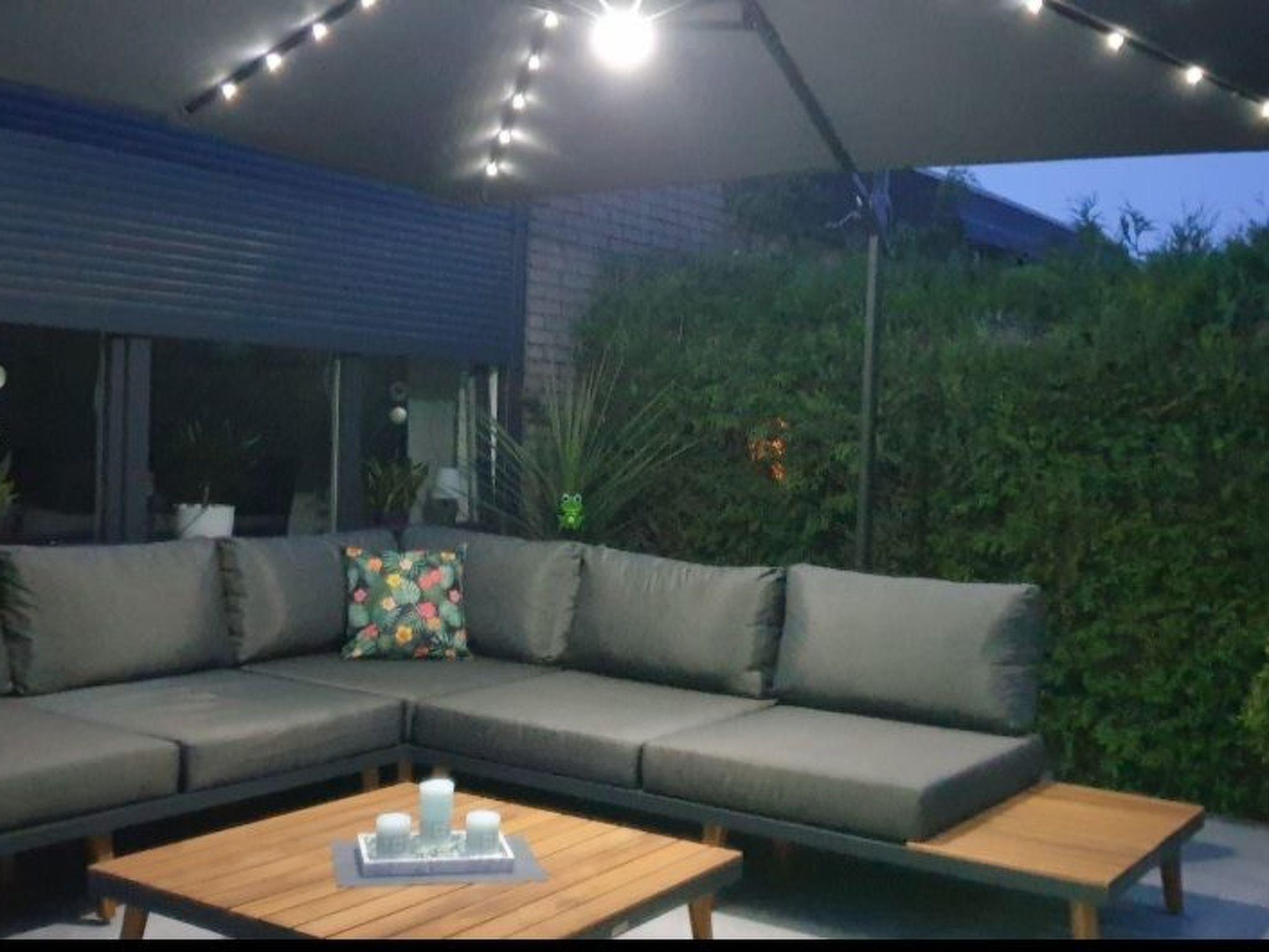 The outdoor area of the house offers a sun terrace with garden furniture and parasol, adjoining a 250 m² private garden. Here you can enjoy relaxing hours outdoors and step out onto the terrace directly from the living/dining room. A storage room offers enough space for bicycles or beach toys and there is a parking space for your car.