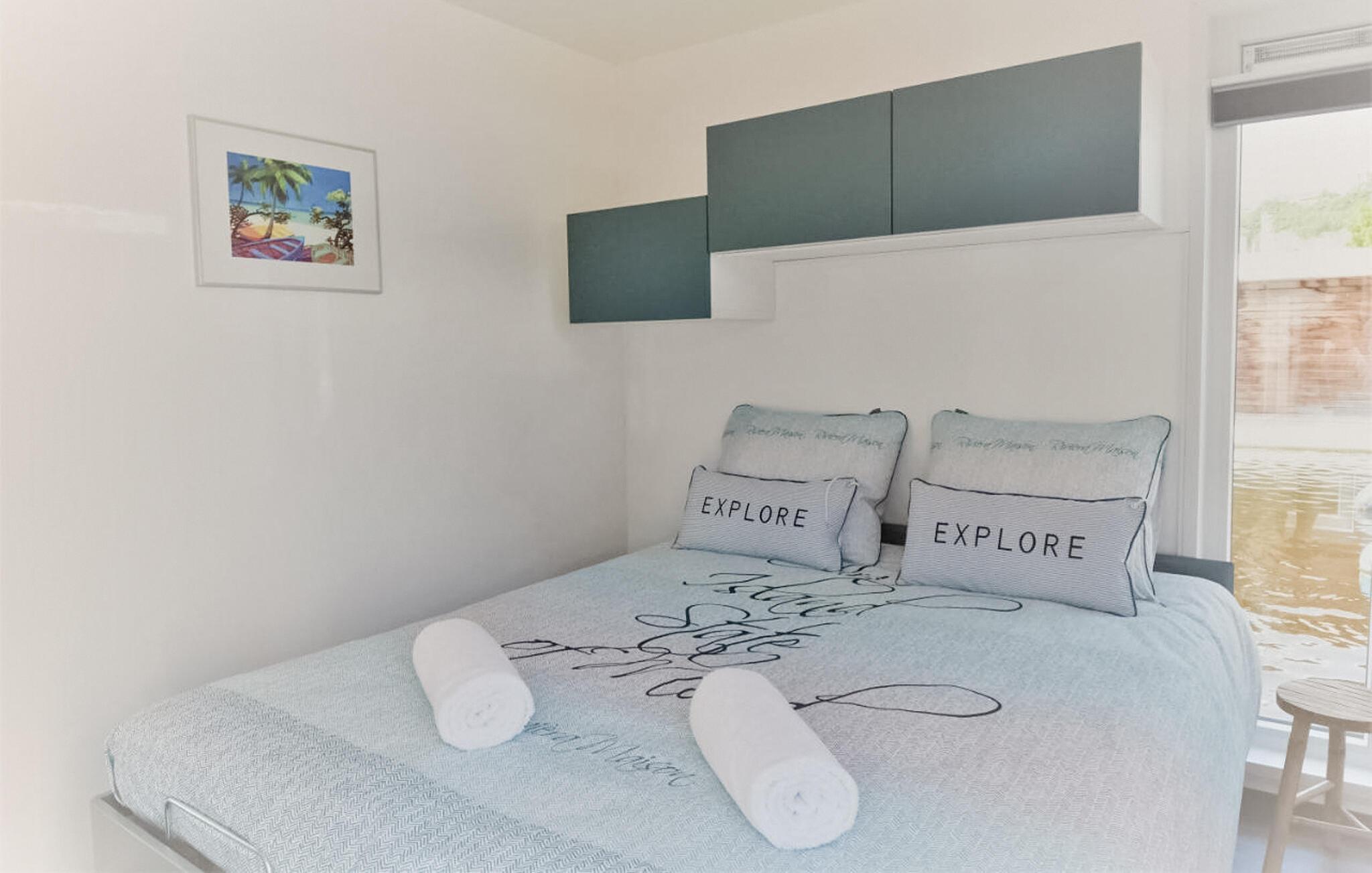 Denne husbåd ligger fortøjet på en dejlig lystbådehavn med masser af faciliteter og en fantastisk restaurant i gåafstand. Som par kan I se frem til en afslappende stund i denne husbåd, som har moderne og farvekoordineret indretning og udstyr. Nyd den lyse stue, hvor I kan lave mad sammen eller bare slappe af i sofaen. Begynd jeres dag med en dejlig morgenmad på den overdækkede terrasse og planlæg jeres næste aktiviteter.
