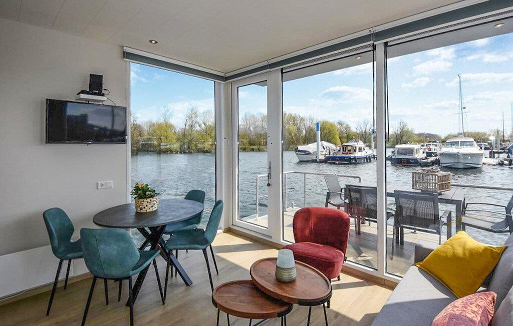 Denne husbåd ligger fortøjet på en dejlig lystbådehavn med masser af faciliteter og en fantastisk restaurant i gåafstand. Som familie kan I se frem til en afslappende tid i denne husbåd, som har moderne møbler og udstyr. Nyd komforten i den lyse stue, hvor I kan lave mad sammen eller bare slappe af i sofaen. Begynd jeres dag med en dejlig morgenmad på den overdækkede terrasse eller nyd eftermiddagssolen på tagterrassen med en kølig drink.