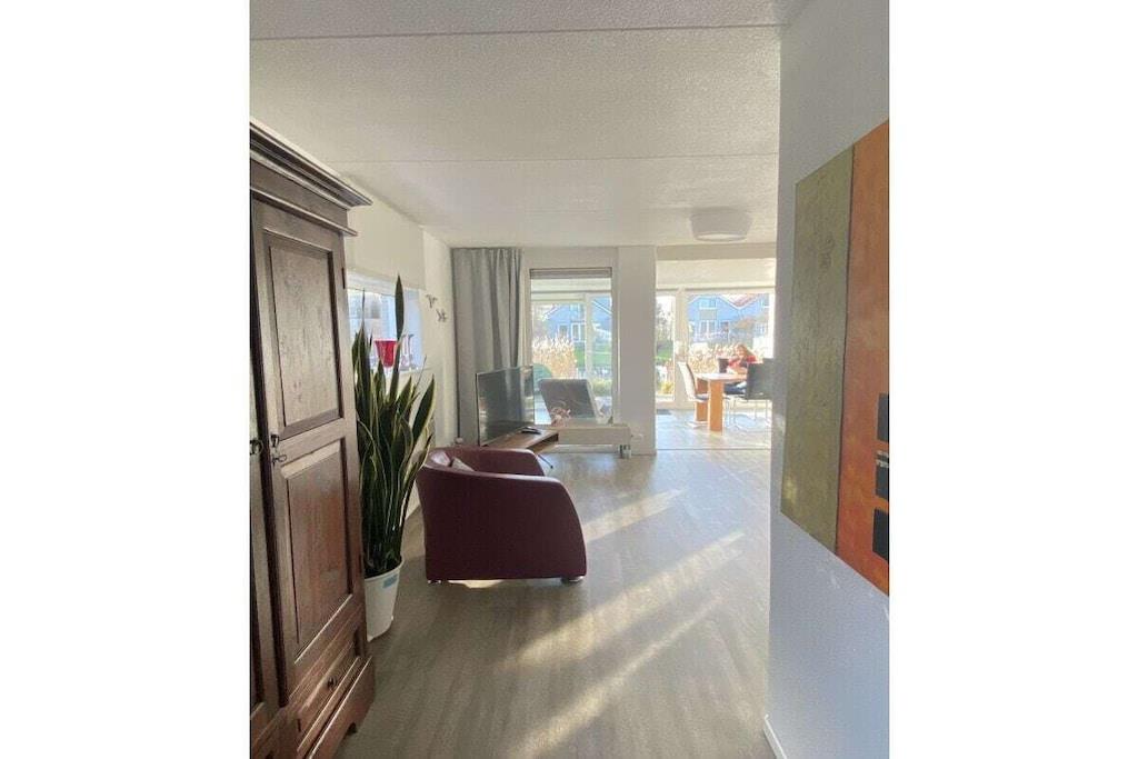 En varm velkomst til feriehusene ??? Ankerplatz-Makkum! Her: Feriehus MakkumSee! Kontakt os gerne med spørgsmål via e-mail (info@ankerplatz-makkum.de) eller WhatsApp (+49 162 6333 104) – giv os også besked, hvis huset er booket. Vores kærligt møblerede feriehus MakkumSee (plads til 6 + spædbarn) venter på dig, komplet med sauna, vinterhave, kano og privat badebro/direkte adgang til vandet. Huset har en opholdsstue med et rummeligt, åbent køkken med integreret morgenmadsbar. Vinterhaven støder op til stuen og fører ud til terrassen (med læhegn, parasol, spise- og siddeområde, liggestole og grill) og haven med egen badebro ved den tilstødende kanal. Huset har tre soveværelser, hvoraf det ene har en barneseng, et badeværelse, et gæstetoilet og et rummeligt opbevaringsrum med et ekstra flaskekøleskab. ... Saunaen ligger lige ved siden af terrassen/siden af huset, hvilket giver privatliv. En kano er også tilgængelig – du er selvfølgelig velkommen til at medbringe din egen båd eller jetski for at udforske IJsselmeer (400 m) eller de mange kanaler i det omkringliggende område. Cykler, scootere og spil er tilgængelige – uden garanti. En motorbåd, der ikke kræver licens, kan også arrangeres gennem os. Cykler, elcykler, gokarts, kajakker, elbåde og SUP'er kan lejes 200 m væk. Surfskoler og udstyr er tilgængelige på stranden. Vores feriehus ligger i ferieparken Makkum Beach. IJsselmeer og stranden ligger direkte ved siden af parken, samt et stort natur- og fuglereservat og en meget dejlig, stor hundepark med vandrestier og vandområder, hvor hunde kan boltre sig og svømme efter hjertens lyst.