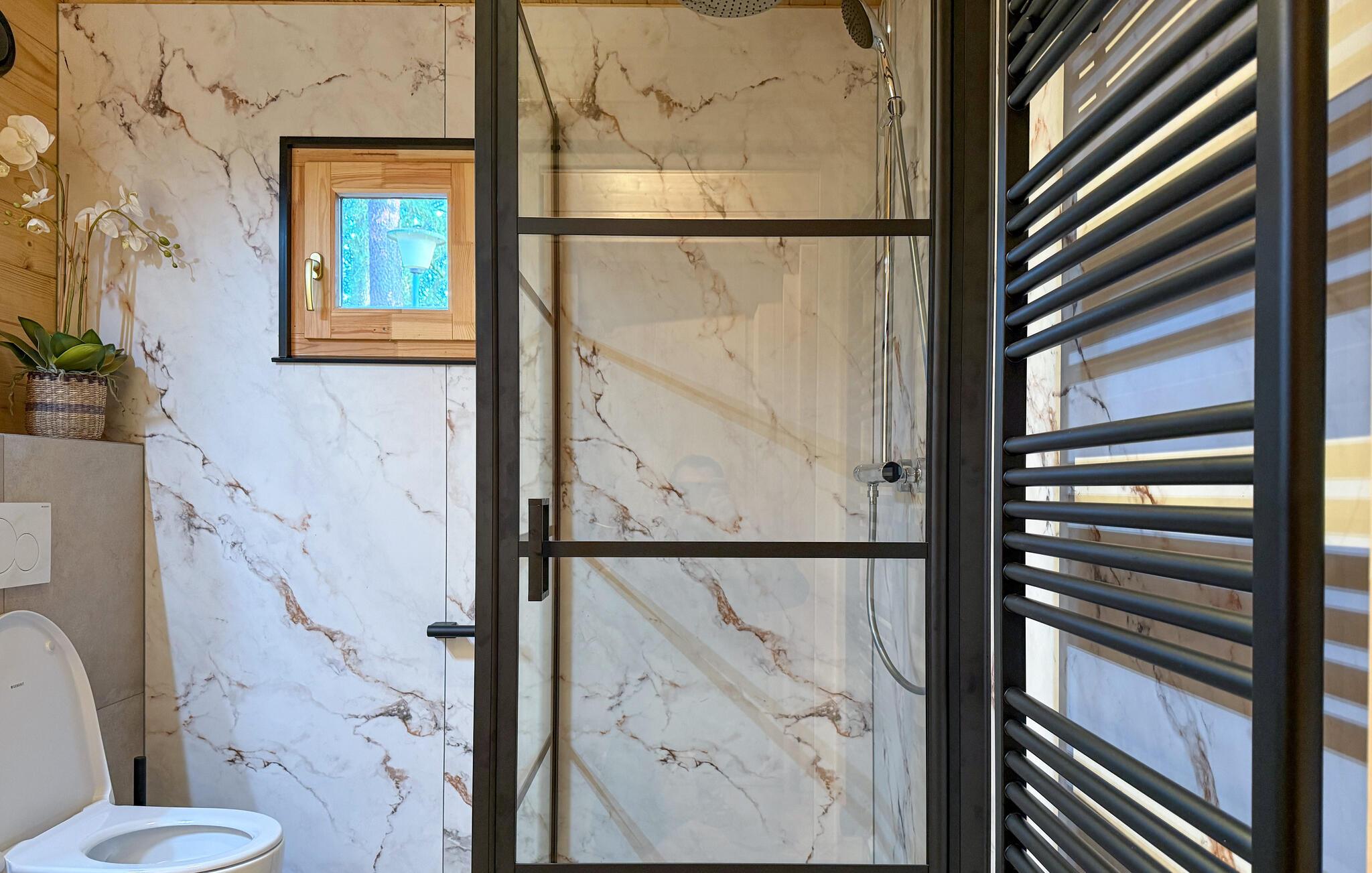 Dette charmerende feriehus i Meijel lægger op til en afslappende pause. Omgivet af skov og natur er det det ideelle sted at forlade hverdagen og lade batterierne op. Interiøret er noget særligt med et varmt trædesign og moderne accenter. I den åbne opholdsstue finder I en behagelig sofagruppe og et stort spisebord, ideelt til selskabelige aftener med familien. Det moderne køkken er veludstyret, mens de store vinduespartier slipper masser af lys ind og giver udsigt til haven. Alt i alt skaber den hyggelige indretning en hyggelig atmosfære.