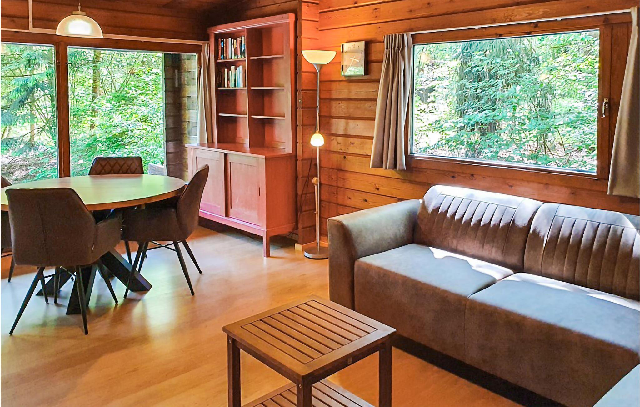 Det skønne træhus har en rolig beliggenhed, ud til træer og buske, så her får I en dejlig base, hvor I hurtigt vil føle jer hjemme. Der er virkelig gjort noget ud af indretningen, så I får en dejlig ramme til de rolige stunder med familien eller vennerne, hvor I kan slappe af i den åbne stue og hygge jer med madlavning, leg og afslapning. Desuden er der en overdækket terrasse, hvor I kan nyde dagens måltider i den friske luft og drøfte dagens aktiviteter og udflugter.