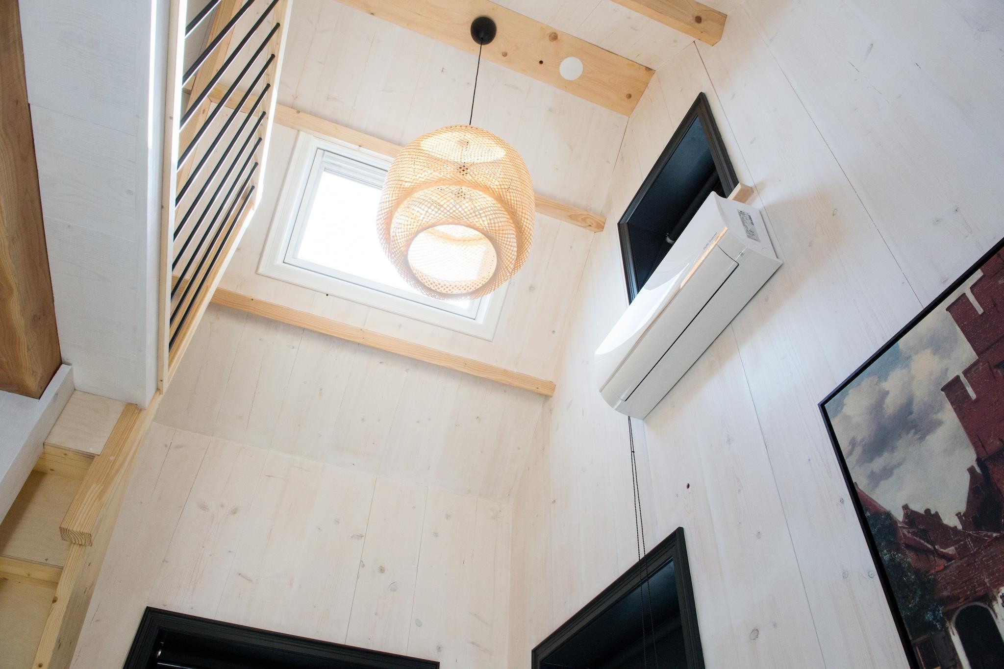 Stueetage: (åbent køkken(kakkelovn, kogeplade, brødrister, emhætte, espressomaskine, combi-mikroovn, opvaskemaskine , køle-fryseskab, håndvask), stue / spisestue(dobbeltsovesofa, Fjernsyn, spisebord, sofahjørne), badeværelse(bruser, håndvask, toilet), åbent rum(dobbeltseng, varme, klimaanlæg)) have, havemøbler, parkering