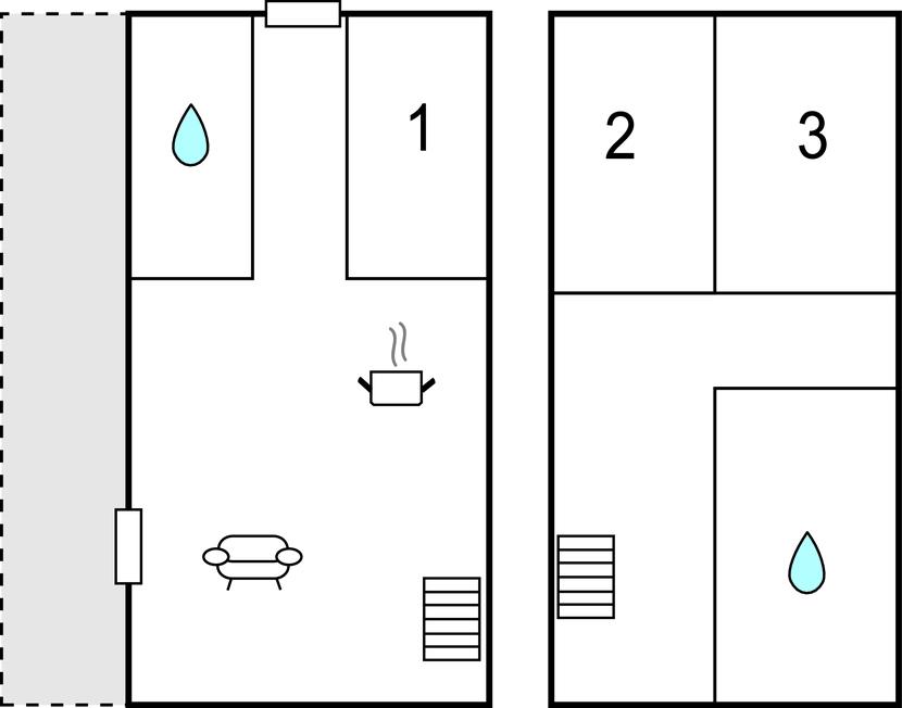 Soveværelse (nr. 1) - 2 Sovepladser. (Enkeltseng(e)).