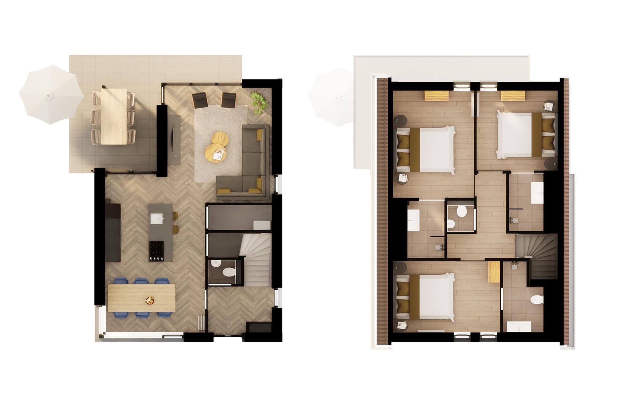 Stueetage: (entre(toilet), Stue(Fjernsyn(Smart-TV), sofahjørne), åbent køkken(kogeplade(Komfur med fire kogeplader, induktion), kaffemaskine(kopper), combi-mikroovn, opvaskemaskine , køle-fryseskab)) På 1. etage: (Soveværelse med badeværelse(dobbeltseng eller 2 enkeltsenge Senge, bruser(Walk-in-bruser), håndvask, toilet), Soveværelse med badeværelse(dobbeltseng eller 2 enkeltsenge Senge, bruser, håndvask), Soveværelse med badeværelse(dobbeltseng eller 2 enkeltsenge Senge, bruser, håndvask), Repos(toilet)) terrasse, have(delvist indhegnet), havemøbler, parkering, swimmingpool(deles med andre gæster, udendørs, indendørs), Ladestation til el-biler