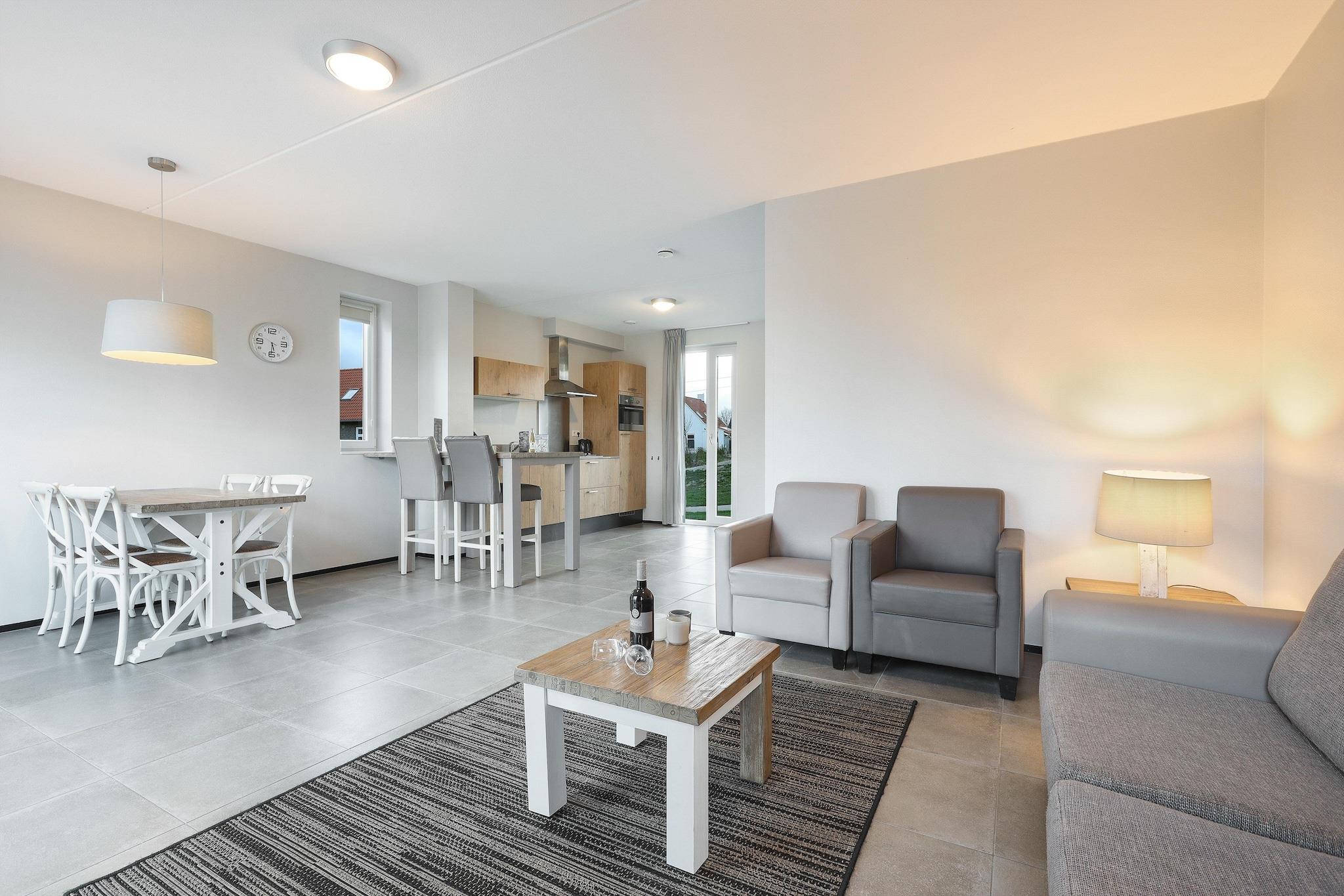 Velkommen til dit hyggelige tilflugtssted på Strand Resort Nieuwvliet-Bad, beliggende kun 700 meter fra den smukke Nordsøstrand og 3 km fra den maleriske landsby Nieuwvliet. Dette semi-fritliggende feriehus tilbyder moderne komfort på to etager, perfekt til par, små familier eller nære venner. Stueetagen har en lys opholdsstue med et tv og et åbent køkken fuldt udstyret med alt hvad du behøver, herunder en opvaskemaskine og kombineret mikroovn. Ovenpå finder du to soveværelser med eget bad, hver med to boksmadrasser (den ene arrangeret som en dobbeltseng) og et tv. Et badeværelse har badekar med bruser; den anden et brusekabine. Tag din lodne ven med! Kæledyr er velkomne her, og Zeelands kyst byder på masser af eventyr for både mennesker og deres ledsagere. Gå en tur til de kæledyrsvenlige strande i nærheden, eller udforsk de naturskønne klitstier, der byder hunde velkommen året rundt. Begivenheder som "Doggie Beach Day" og weekend kæledyrsvandringer i Nieuwvliet skaber sjove og sociale oplevelser. Hjemme igen kan du slappe af i din private have, mens din hvalp nyder den friske havbrise fra den solrige terrasse. Zeeland er en lækkerbisken for sanserne - især dine smagsløg. Nyd en middag ved stranden på Dok 14 eller nyd lokal vin på en kæledyrsvenlig terrasse, mens du ser solnedgangen. Gå ind i Knokke eller Breskens for at få fisk og skaldyr, belgiske vafler eller håndværkschokolade.