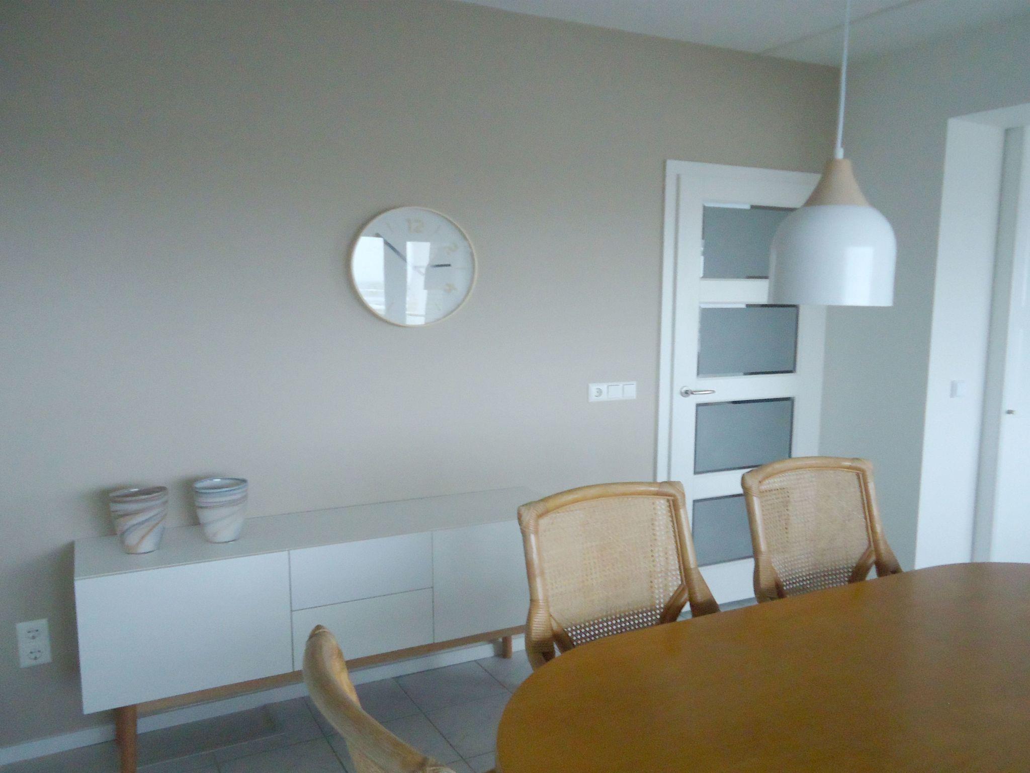 The 80m2 flat is located on the 4th floor and is easily accessible by lift. The spacious living room and the equally spacious dining room are flooded with light thanks to the large window fronts. From here you have a fantastic panoramic view of the Noordwijk lighthouse and the sea. The balcony, which is accessible from the living and dining room, invites you to sunbathe in the marvellously fresh sea air in the afternoon.