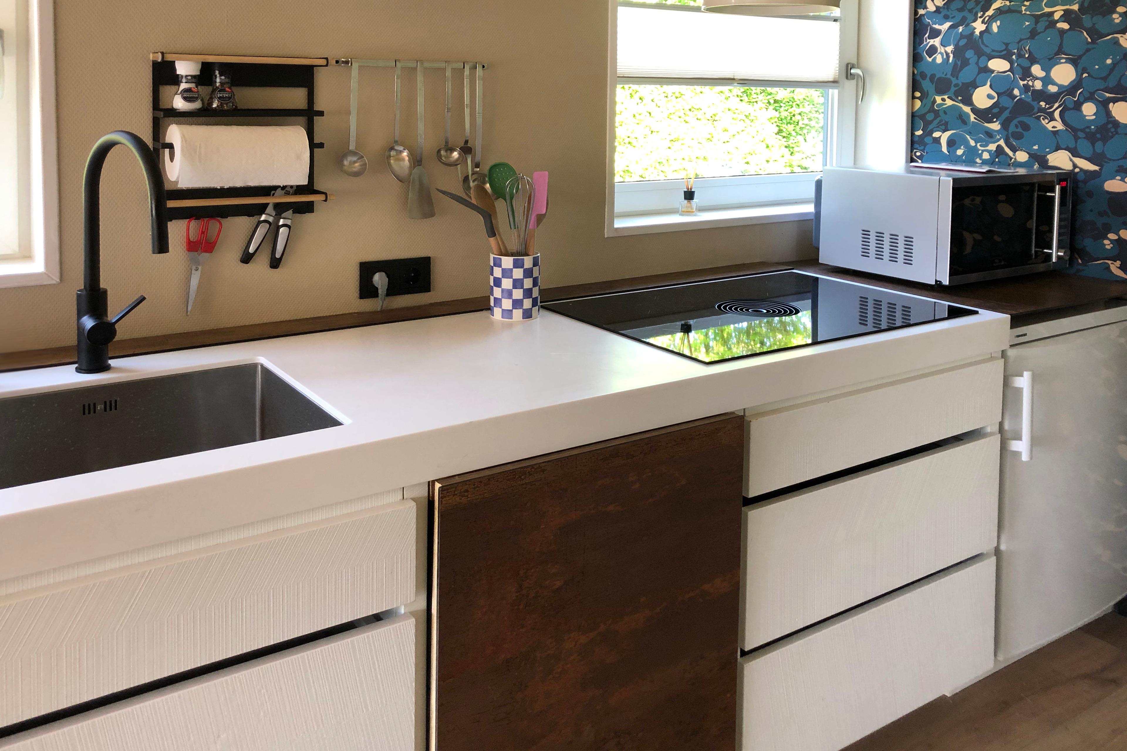 Das Ferienhaus SunGarden bietet mit seiner guten Ausstattung viel Komfort. Die Küche verfügt über eine Kombi-Mikrowelle und einen Geschirrspüler. Im Wohnzimmer steht ein Smart-TV, und die großen Fenster lassen viel Tageslicht herein.