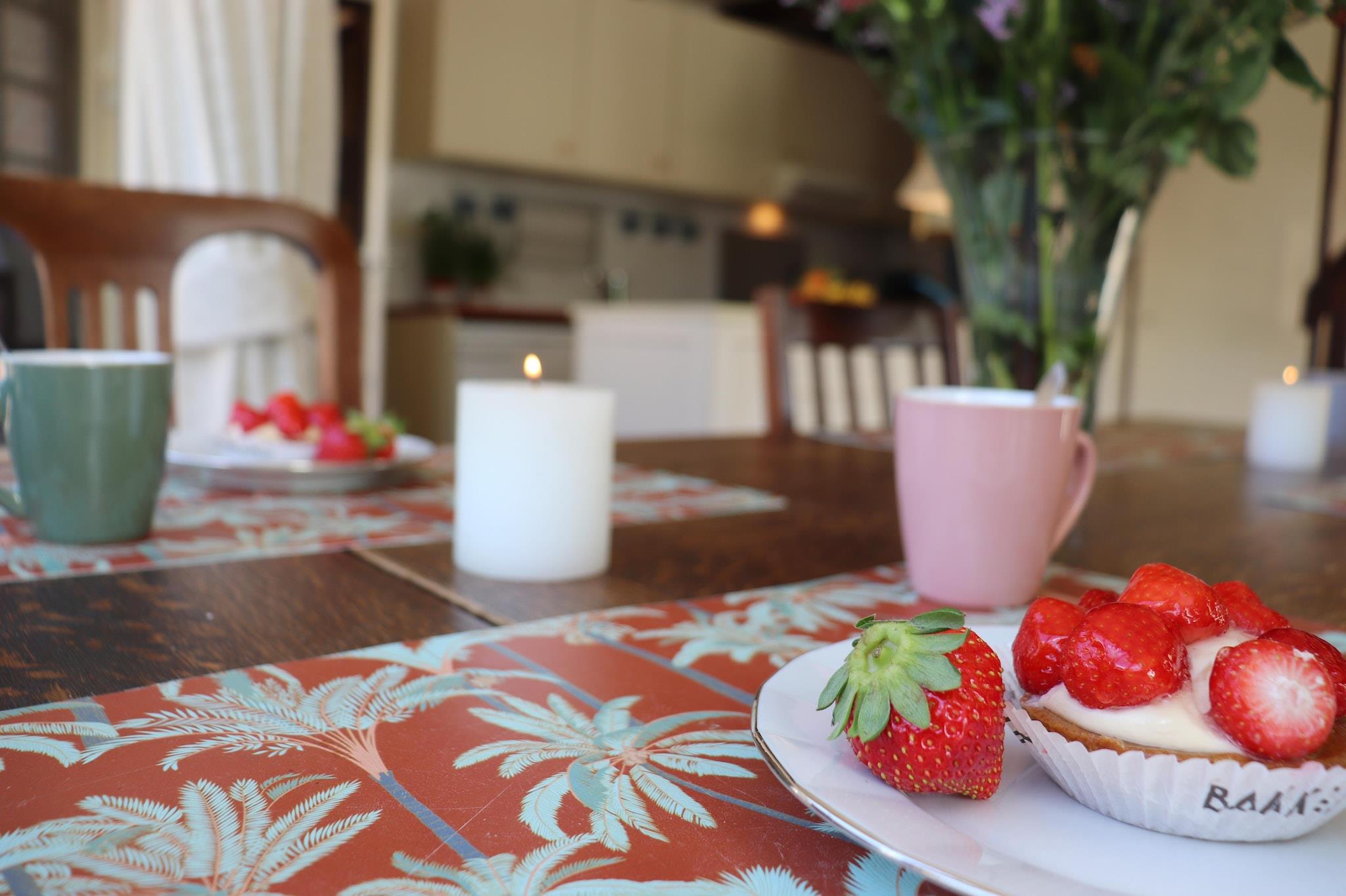 Stueetage: (entre, Stue(Fjernsyn, pejs, sofahjørne), spisestue(spisebord), Køkken(elkedel, brødrister, kaffemaskine(kaffetragt), combi-mikroovn, opvaskemaskine , køle-fryseskab), soveværelse(dobbeltseng), badeværelse(badekar med bruser, toilet, vaskemaskine)) På 1. etage: (soveværelse(dobbeltseng(140 x 200 cm)), soveværelse(enkeltseng, enkeltseng)) varme, terrasse, have, cykelopbevaring, havemøbler, havemøbler, grill, Parasol, Solcreme