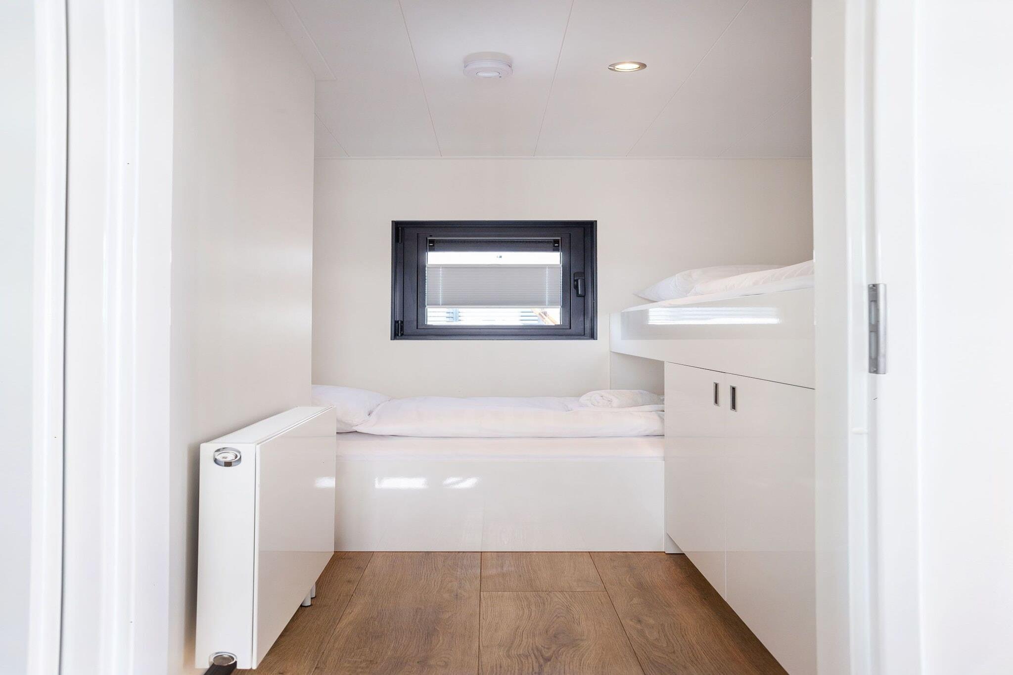 Denne komfortable husbåd med have på det åbne vand ligger i en smuk beliggenhed i udkanten af Marina Waterrijck med en uhindret udsigt over Sneekermeer. Beliggenheden og faciliteterne ombord garanterer en hyggelig, afslappet og romantisk oplevelse året rundt. Nyd en smuk solopgang over Sneekermeer med en frisk Nespresso på tagterrassen eller solnedgangen under en hyggelig grillfest i haven ved det åbne vand. Husbåden er omgivet af vand og tilbyder komforten af et luksusferiehus med have. Stuen er opdelt i opholdsstue, spiseplads og åbent køkken. Gennem de store vinduespartier kan du desuden nyde den smukke frie udsigt indefra. Opholdsområdet er indrettet med hjørnesofa, sofabord, stol og fjernsyn (ingen kanalpakke). Det moderne åbne køkken er udstyret med 2-brænder induktionskomfur, køleskab med fryser, opvaskemaskine, ovn, kaffemaskine (filter og Nespresso), mælkeskummer, elkedel og brødrister. Det store soveværelse har en dobbeltseng (160x200 cm) og et skab til opbevaring af tøj eller ejendele. Det andet soveværelse er indrettet med en robust køjeseng (80x200 cm) og et klædeskab. Til de mindste gæster er der en sammenklappelig babyseng (60x120 cm) og en høj stol. Det moderne badeværelse har bruseniche, toilet og badeværelsesmøbler med spejl. Houseboat Agua Dolce har en rummelig have (ca. 100m2), der støder op til vandet. I haven kan I lege og grille, vekslet med en forfriskende dukkert i vandet. Derudover har båden en meget rummelig tagterrasse/soldæk på cirka 20 m2, som er tilgængelig via en vindeltrappe bagtil. Kan du allerede se dig selv nyde den brede udsigt over loungesættet? Båden har også en terrasse foran (8m2) og en terrasse på bagsiden (6m2). Husbåden ligger på egen anløbsbro, hvor en (sejl)båd eller slup også kan fortøjes