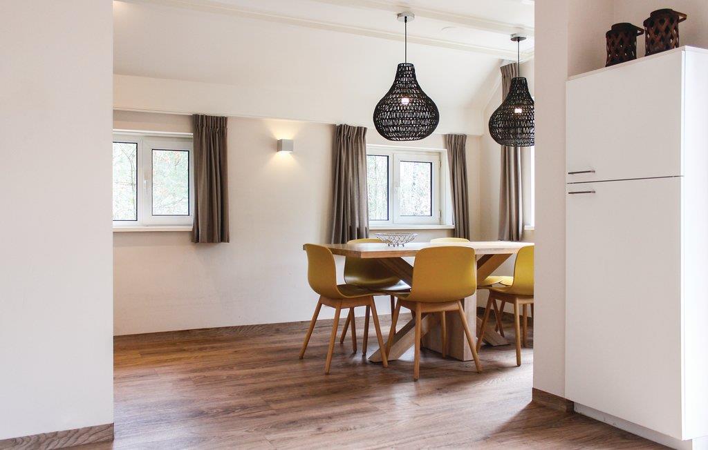 Hele familien finder hygge og afslapning i dette smukt beliggende feriehus. Nyd de skovklædte omgivelser i det udendørs spabad. Start dagen med morgenmad på den møblerede terrasse. Efter en aktiv dag i området kan I tilbringe aftenen på liggestolene afsluttes med et godt glas vin. Møblerne består af smukke elementer og lyse farver. Slap af ved pejsen, mens dine børn spiller brætspil. Det fuldt udstyrede køkken har opvaskemaskine, mikroovn med ovn, elkedel, kaffemaskine og Senseo. I stueplan er der desuden soveværelse og badeværelse med badekar, bruseniche og håndvask. Trappen i gangen fører dig til det andet soveværelse, hvorfra du når det tredje soveværelse. Din hund behøver ikke at blive hjemme, kæledyr er velkomne i dette feriehus.