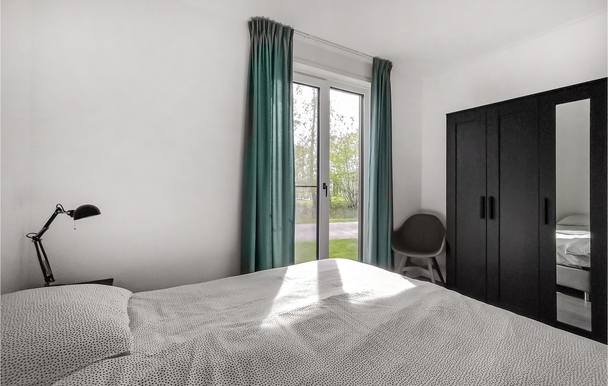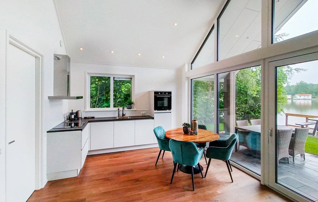 Med 2 soveværelser, hver med 2 enkeltsenge, har huset plads til, at op til 4 personer kan nyde en afslappende ferie sammen her i stilfulde omgivelser. Der er en herlig udsigt over søen gennem feriehusets gulv til loft-vinduer. Her kan I tilbringe en dejlig ferie sammen hele året rundt.