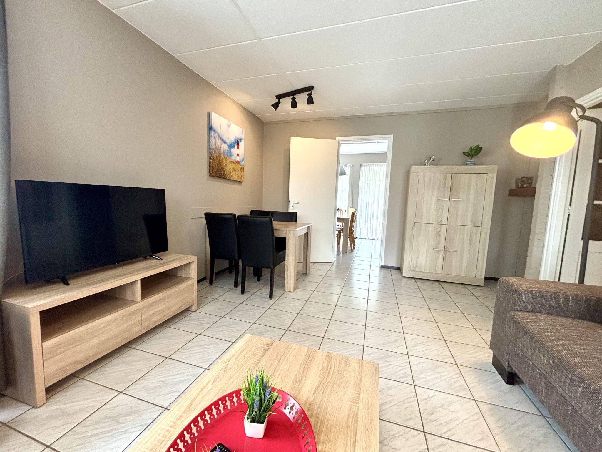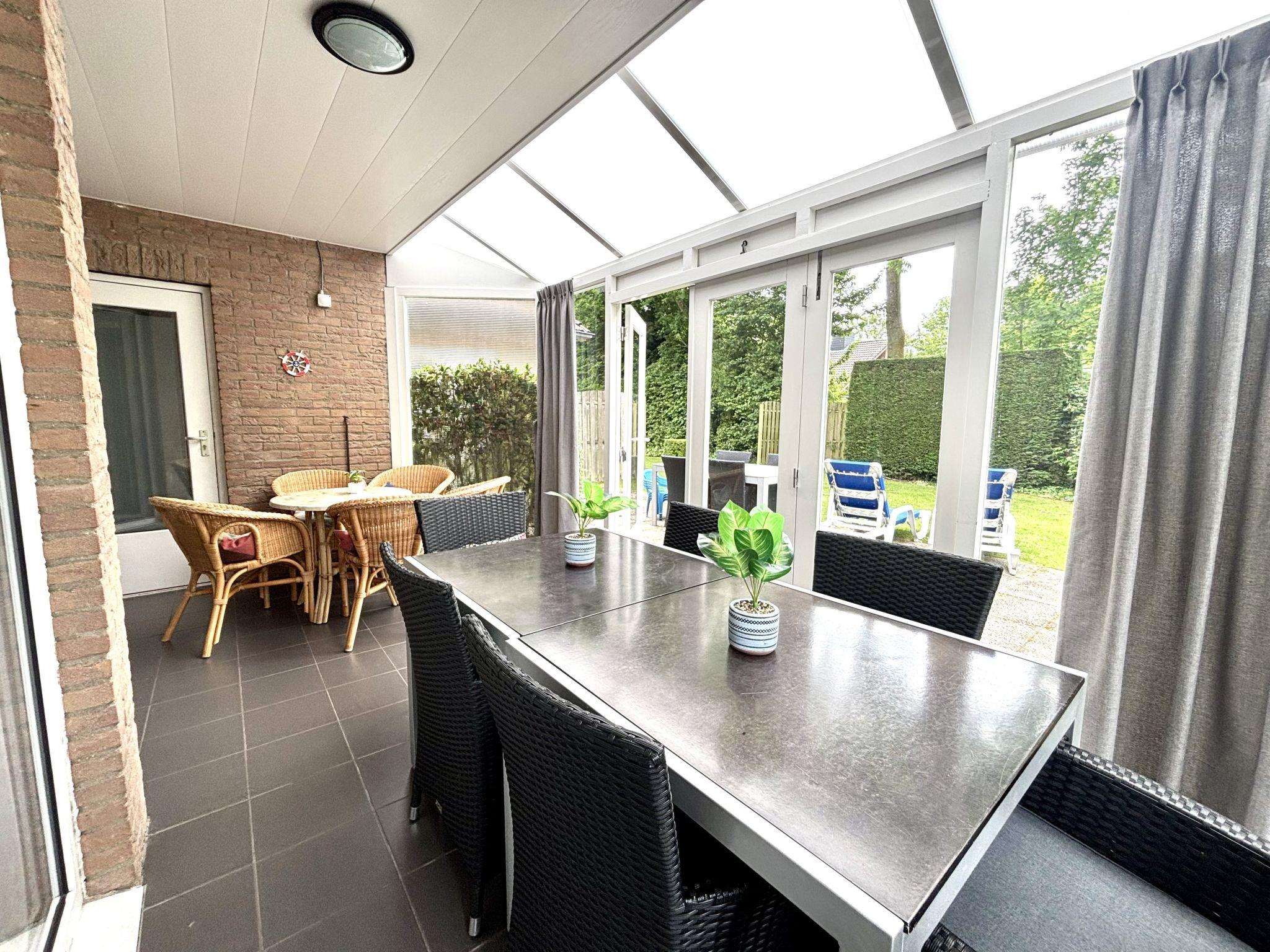 "Boszicht 1", 3-room house on the ground floor. Partly renovated: living/dining room with TV. Exit to the garden, to the loggia. 2 double bedrooms, each room with 2 beds with separate WC and shower/WC. Large kitchen (oven, dishwasher, 4 induction hot plates, kettle, electric coffee machine, combination microwave). Electric heating. Terrace furniture, deck chairs. Facilities: children's high chair, baby cot. Internet (WiFi, free). Suitable for families.