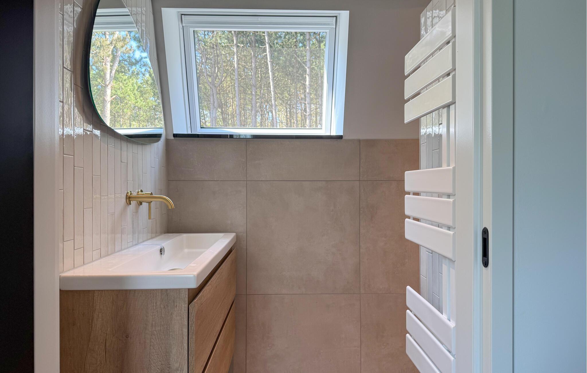 Jeres feriehus er noget særligt med sin komfort og sin rolige beliggenhed i skovbrynet. Den lyse opholdsstue er udstyret med en elegant hjørnesofa, TV og brændeovn. Slap af med en film eller læs i fred og ro med udsigt over de grønne områder. Det åbne designerkøkken med en rummelig kogeø og barstole lægger op til at nyde madlavningen sammen. Store vinduer bringer naturen direkte ind i huset og skaber en særlig følelse af rummelighed.