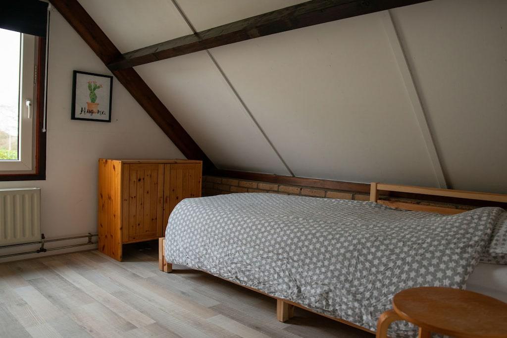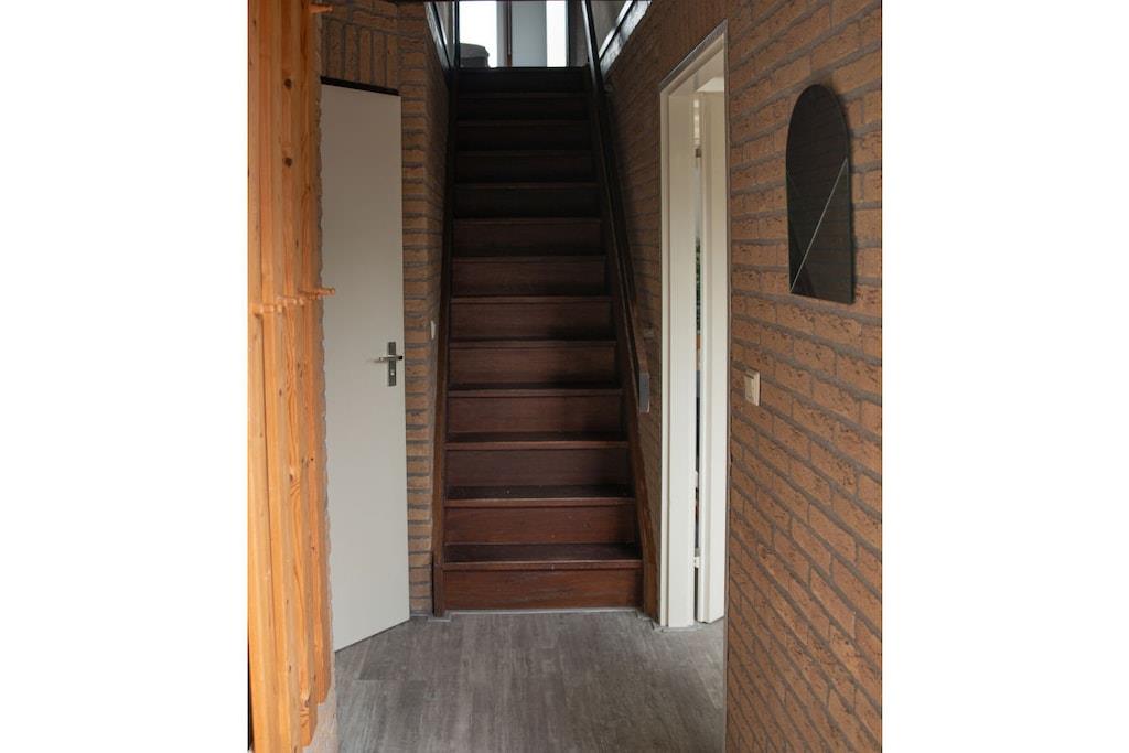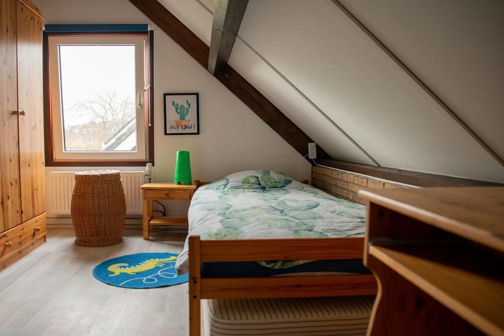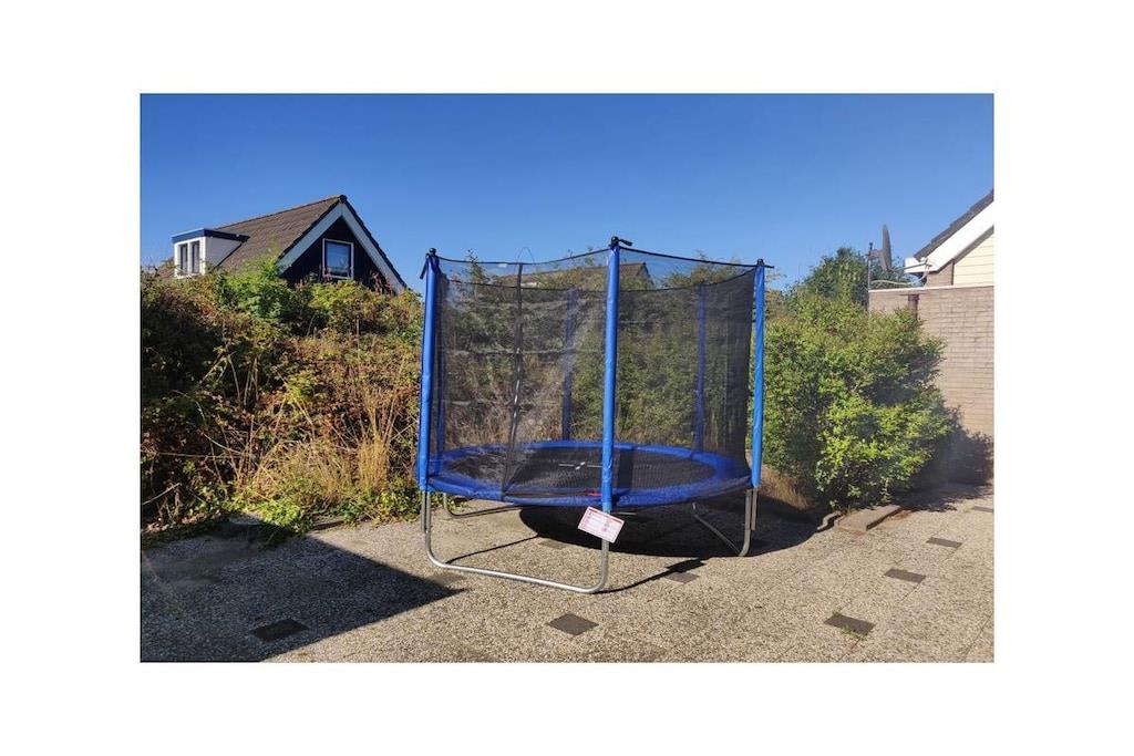 Stueetage: (entre, åbent køkken(Fjernsyn, spisebord, radio, CD-afspiller, kogeplade, elkedel, brødrister, kaffemaskine, mikrobølgeovn, opvaskemaskine , køleskab, fryser), badeværelse(bruser, håndvask, toilet), pulterkammer(vaskemaskine, Parasol)) På 1. etage: (soveværelse(dobbeltseng), soveværelse(dobbeltseng), soveværelse(enkeltseng, enkeltseng), soveværelse(enkeltseng, enkeltseng), toilet(håndvask, toilet)) vaskemaskine, terrasse, have, havemøbler, parkering, trampolin, Parasol, strygebræt, strygejern