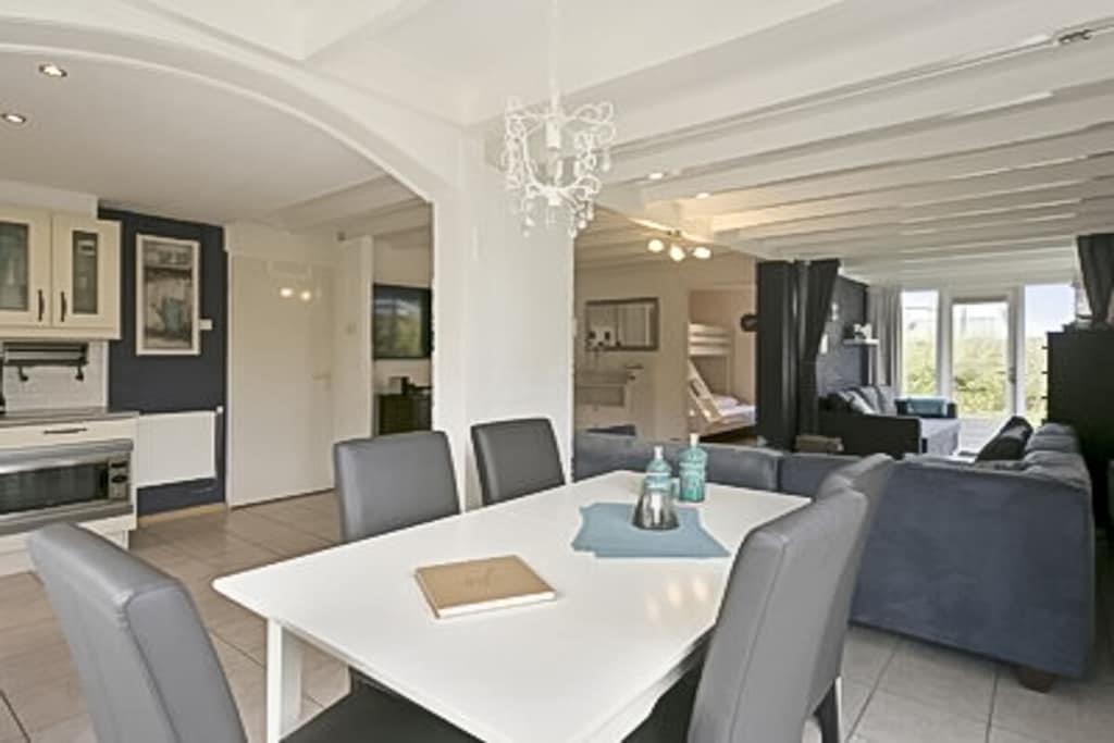 Sie betreten den Flur mit Garderobe, die an ein modernes Badezimmer mit großer ebenerdiger Dusche und Waschbecken angrenzt. Neben dem Badezimmer befindet sich eine separate Toilette. Es gibt 3 Schlafzimmer; 2 Schlafzimmer mit einem Doppelbett und 1 Zimmer mit einem Etagenbett. Neben der offenen Küche befindet sich ein attraktives Wohnzimmer, das bequem mit einem Geschirrspüler, einem Backofen, einem Induktionskochfeld und einer Kombi Mikrowelle ausgestattet ist. Das Wohnzimmer strahlt Gemütlichkeit aus und bietet Platz für die ganze Familie sowohl im Essbereich als auch im Sitzbereich mit Ledersofas und Holzofen. Ihr vierbeiniger Freund ist in diesem Bungalow ebenfalls willkommen. Im großen Garten können Sie viel Privatsphäre genießen und finden genügend Gartenmöbel, um sich draußen zu treffen und das gesunde Klima zu genießen.