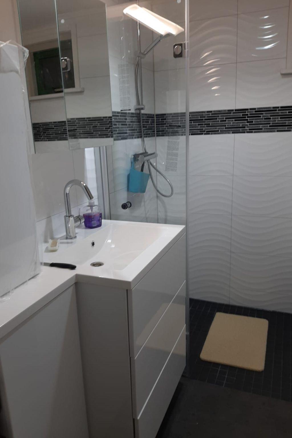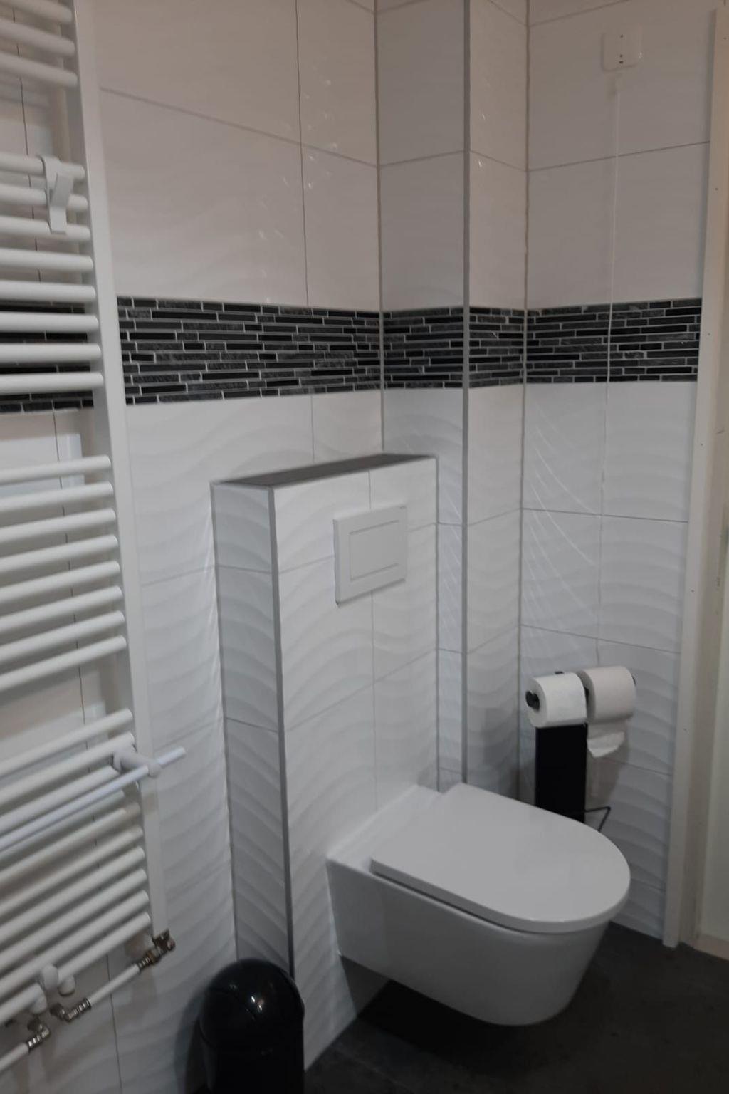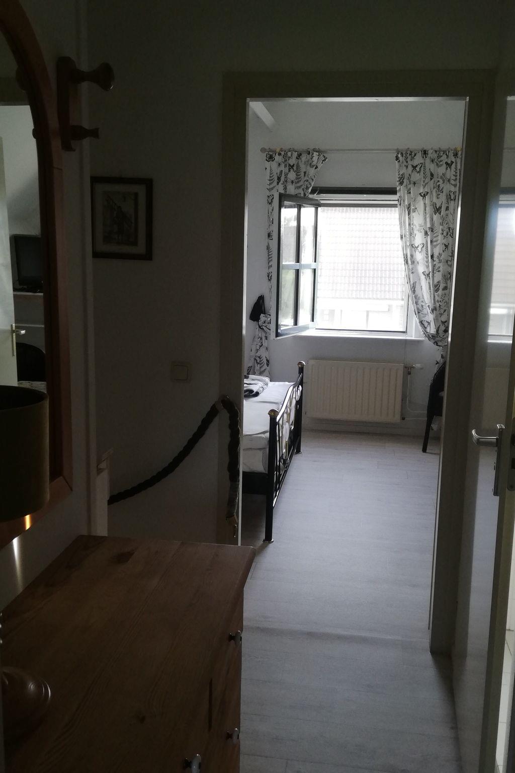 The living space of approx. 90 m² is spread over two fully heated floors. The windows are fitted with electric shutters to darken the room. On the ground floor there is a living area with a seating area and Smart TV (German and English channels only), a dining area, a fully equipped fitted kitchen with fridge-freezer, a double bedroom and a bathroom. The bedroom is equipped with a Smart TV and double bed (2 × 0.90 m wide). The bathroom on the ground floor has a walk-in shower, washbasin and WC. There is also a storage room on this floor with a washing machine and tumble dryer for free use. The upper floor offers two further bedrooms, each with a double bed (2x0.90cm wide) and a satellite TV (German and English channels only), as well as a further bathroom with shower, washbasin and toilet. Fly screens are attached to all bedroom windows. A travel cot is available on site. Internet reception via wifi. Please note that you must bring your own bed linen and towels.