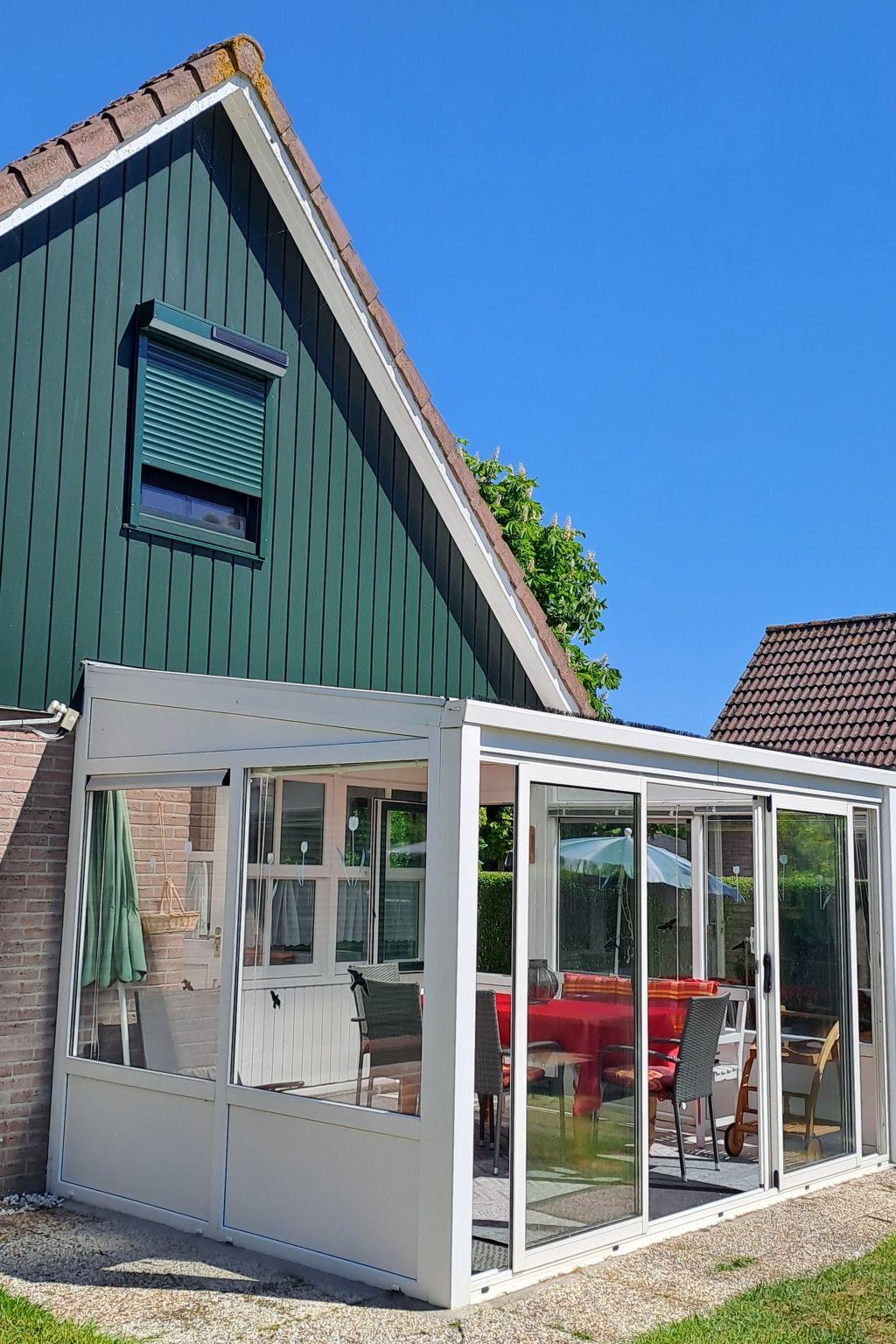The fully enclosed property is fenced towards the road and the neighbour. On the other two sides, the property borders on water. There are hedges and an 80cm high fence securing the sloot (surface water ditch). Directly connected to the holiday home is a conservatory, which can be opened with sliding doors. This has seating, deckchairs, parasols and a charcoal barbecue. There are two private outdoor car parking spaces in front of the house. There is also a shed on the property, which can be used to store bicycles or other items. In the summer months, the holiday complex offers a swimming pool (10 x 25 m) for communal use free of charge, which is approx. 50 m from your holiday home.
