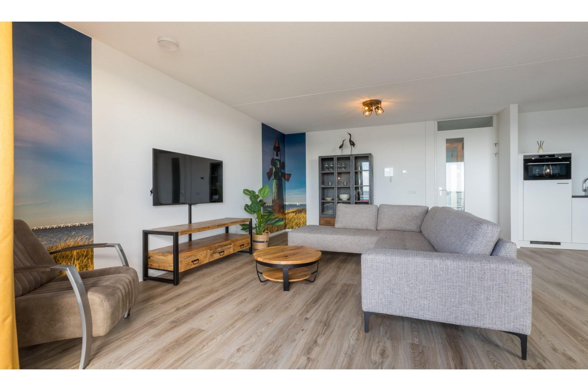 Denne eksklusive lejlighed i stueetagen er beliggende på Oosterschelde, på den afslappende ø Tholen. Helt på spidsen af molen kan du fuldt ud nyde en afslappende ferie her i en dynamisk undervandsverden med imponerende flora og fauna. Meget velegnet til familier og par.Regionen byder på smukke dykkersteder og en trykluftstation i kort afstand. Om sommeren kan du tage fodgængerfærgen til Yerseke og nyde et lækkert måltid på Brasserie de Zeester, eller tage en hyggelig gå-/scootertur gennem regionen Fra indgangen med parkeringsplads kommer du til lejlighedskompleksets første sal via elevatoren eller trapper.lys stue med rummelig hjørnesofa og TV med Chromecast er karakteristisk indrettet, som det fremgår af tapetet på Oosterscheldekering, Zeeland-broen og monumentet "De Verdronken Dorpen in Colijnsplaat" Der er et veludstyret åbent køkken med madlavning. ø og et rundt spisebord med komfortable stole Fra stuen kommer du ind på den rummelige terrasse med loungesæt og panoramaudsigt over Oosterschelde. Den store parkeringsplads har plads til en båd med trailer og en ladestation til elbiler. Cykler kan parkeres i lukket depotrum.