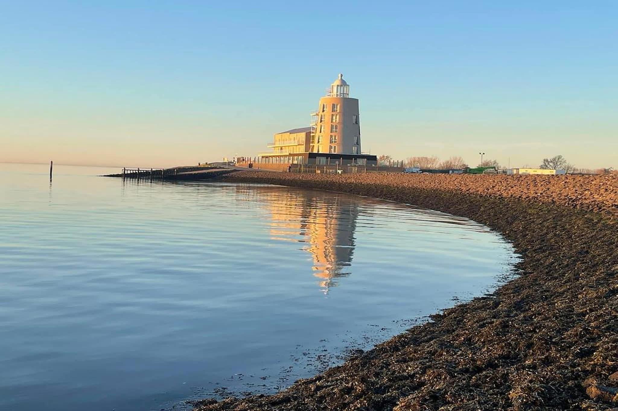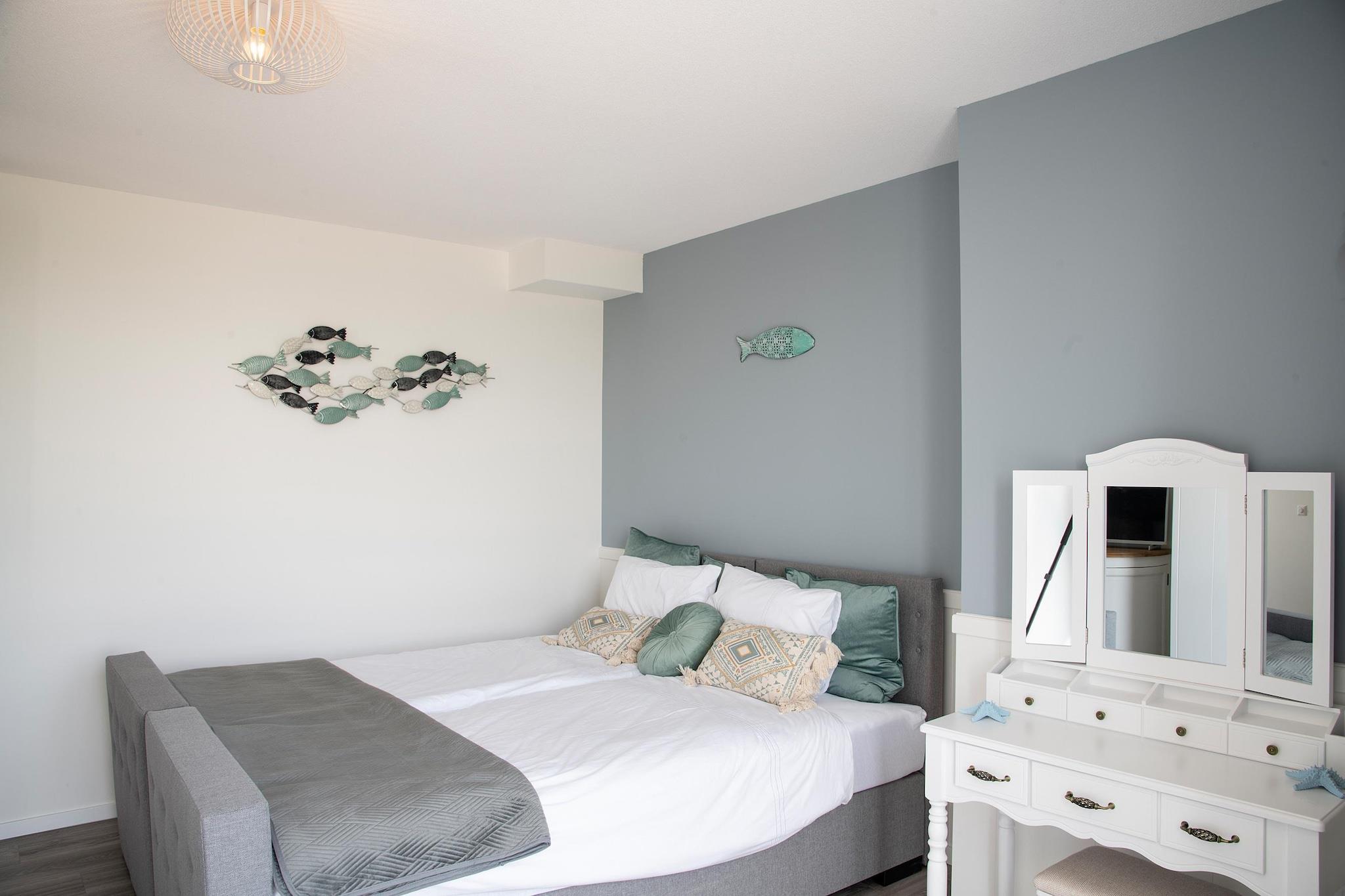 Denne moderne lejlighed ligger på den fredelige Gorishoeksedijk i Scherpenisse, Zeeland, og tilbyder direkte adgang til Oosterschelde Nationalpark, der ligger kun 20 meter væk. Lejligheden ligger på anden sal (med elevator) og har panoramaudsigt over havet fra både den rummelige stue og den private altan - perfekt til at nyde solnedgangen. Indvendigt er lejligheden indrettet i en ren, kystnær stil. Det åbne køkken er fuldt udstyret, og stuen har et opholdsområde, tv og spiseplads med havudsigt. En privat sauna tilføjer et spa-lignende touch efter en dag med udforskning. Nautisk indretning og møbler af høj kvalitet fuldender dette indbydende tilflugtssted ved havet. Kun en kort gåtur fra ejendommen ligger Strand Gorishoeksedijk, et ideelt sted at gå på strandtur. Vandsportsentusiaster vil elske nærheden til Oosterscheldes rolige farvande, et paradis for dykning, sejlads og paddleboarding. For en mere aktiv dag kan du hoppe på den nærliggende færge til Yerseke, en charmerende fiskerby, der er berømt for sin østerskultur - med en tur til Østersmuseet eller en tallerken friske Zeeland-muslinger på Restaurant Oesterij.