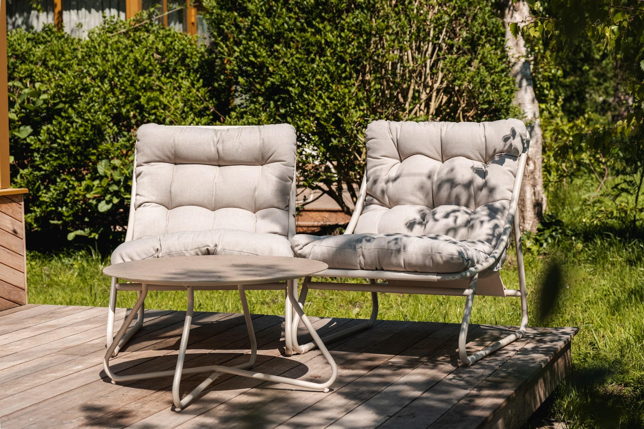 Stueetage: (Køkken(kogeplade), soveværelse(enkeltseng, enkeltseng), soveværelse(enkeltseng, enkeltseng), badeværelse(bruser), toilet(toilet)) sofahjørne, have