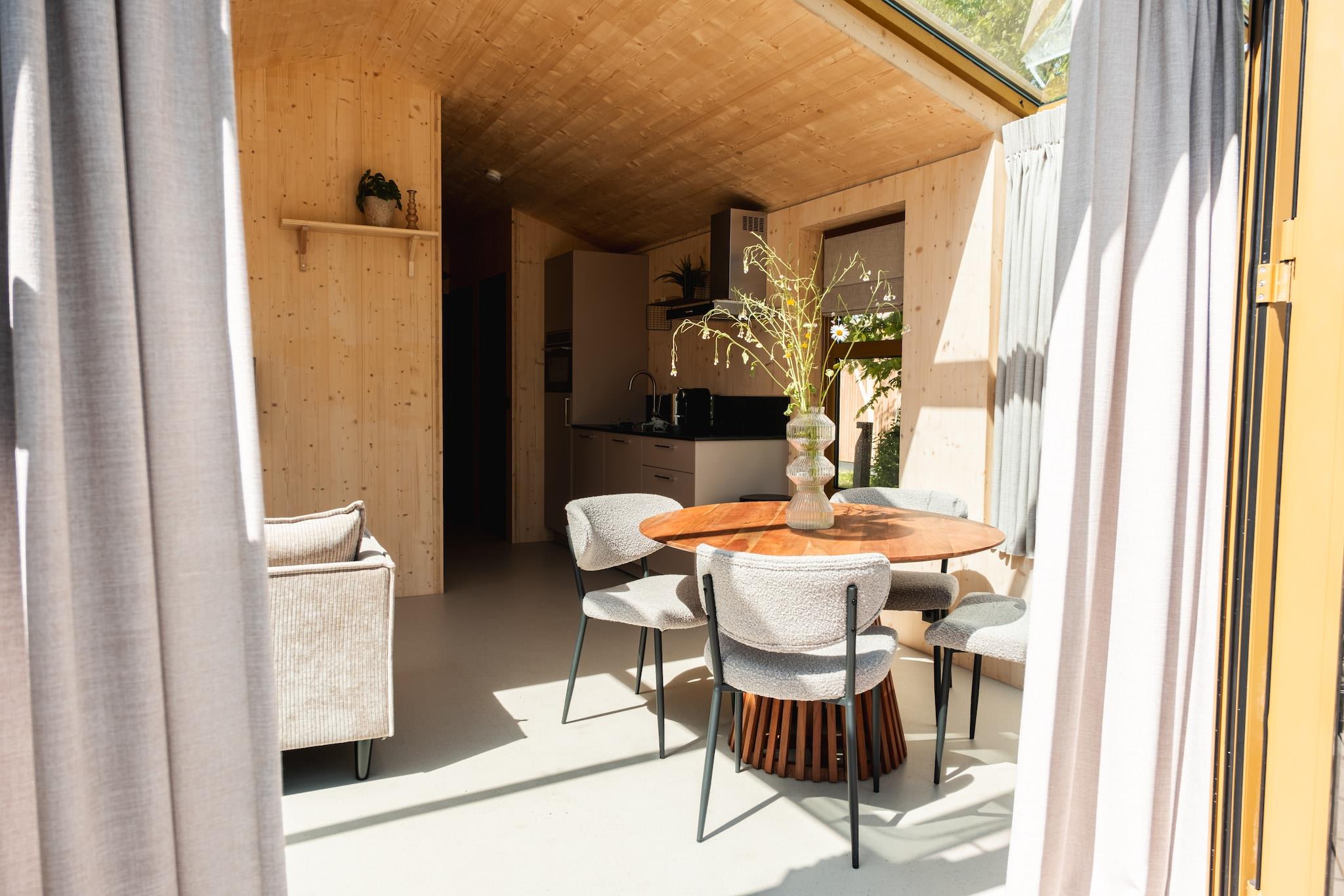Dette charmerende feriehus er et fritliggende og indbydende sted, der blander varme og funktionalitet med en karakteristisk drivhusfacade, der bringer naturligt lys og en hjemlig atmosfære. Det er velegnet til op til fire gæster og har to soveværelser, hver med to enkeltsenge med boxmadras, hvilket gør det ideelt til familier eller små grupper. Én baby kan indkvarteres efter anmodning. Med dedikerede siddeområder både indendørs og i den tilstødende vinterhave kan gæsterne slappe komfortabelt af i alle årstider. Kæledyr skal bekræftes med husejeren. Omgivet af fredfyldt natur tilbyder feriehuset fredelige omgivelser, der opfordrer til udendørs nydelse og rolige retræter. Selvom det ikke er en del af en park eller et resort, giver beliggenheden gæsterne mulighed for at komme i kontakt med naturen og udforske lokale attraktioner i et afslappet tempo. Caféer, markeder og andre bekvemmeligheder er inden for rækkevidde med bil, hvilket sikrer både afsondrethed og tilgængelighed. Indenfor er ejendommen udstyret med gennemtænkte faciliteter for at understøtte et afslappet ophold. Et funktionelt køkkenelement giver mulighed for enkel madlavning, og drivhusudvidelsen forbedrer opholdsrummet med sin unikke atmosfære. Badeværelset har et brusebad, og der er et separat toilet for ekstra bekvemmelighed. Med en hyggelig planløsning og et naturinspireret design tilbyder dette feriehus en forfriskende og afslappende oplevelse.