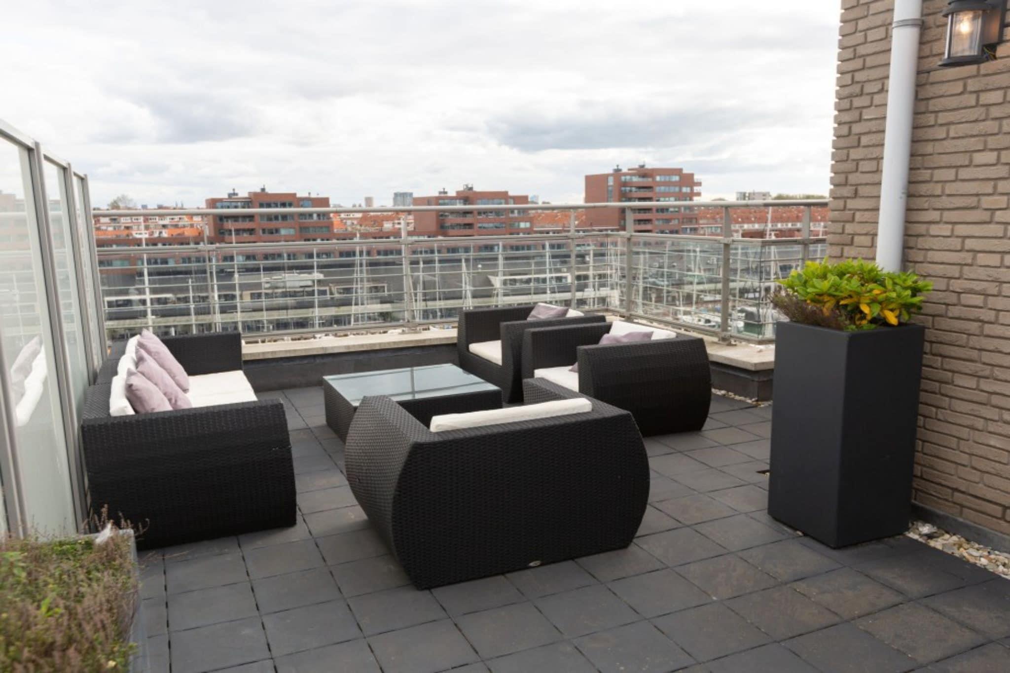 Denne luksuriøse 5-personers penthouse på 4. sal tilbyder en tagterrasse og en smuk udsigt over havnen i Scheveningen. I kort afstand fra de smukke brede sandstrande, den moderne badeby Scheveningen og det kulturelle centrum af den livlige Haag. Lejligheden er udstyret med alle moderne bekvemmeligheder. Der er to soveværelser, hvoraf 1 med 2 enkeltsenge og den anden med 2 enkeltsenge og en ekstra enkeltseng. Der er en hyggelig stue med opholdsområde og spisebord. Det moderne køkken er fuldt udstyret og har en bar med afføring. Badeværelset har brusebad. Du kan sidde på tagterrassen sammen og nyde den smukke udsigt. I dit lejlighedskompleks finder du et rummeligt garage med egen sikker parkeringsplads (du kan nemt nå din lejlighed med elevator fra garagen). marina finder du flere gode restauranter, hvor du kan få en god bid at spise, og du kan være på Zuiderstrand inden for 5 minutter. Hvis du vil gå lidt længere, kan du fortsætte til boulevarden og Scheveningen Pier. Du kan Du kan nemt nå adskillige seværdigheder og attraktioner med sporvogn eller cykel, som Sealife på boulevarden (4 km), miniaturebyen Madurodam (4.4 km), Museum Museum (2,4 km), Fredspaladset (3 km) og hjertet af Politisk hovedstad Haag: Binnenhof (3 km) . Efter at have besøgt disse seværdigheder, er det dejligt at slentre troll gennem de smalle gader med deres butikker, restauranter og udendørs caféer. Vi kan virkelig sige. Det ideelle sted for en varieret ferie.Particulars: Du kan købe et offentlig transportkort i receptionen og de vil også med glæde fortælle dig, hvor de skal leje en cykel. Når du tjekker ind personligt, får du en lille velkomstboks med de første fornødenheder som kaffe, te og toiletpapir. Minimum ophold er 7 nætter (kan også bookes fra minimum 3 nat på anmodning).
