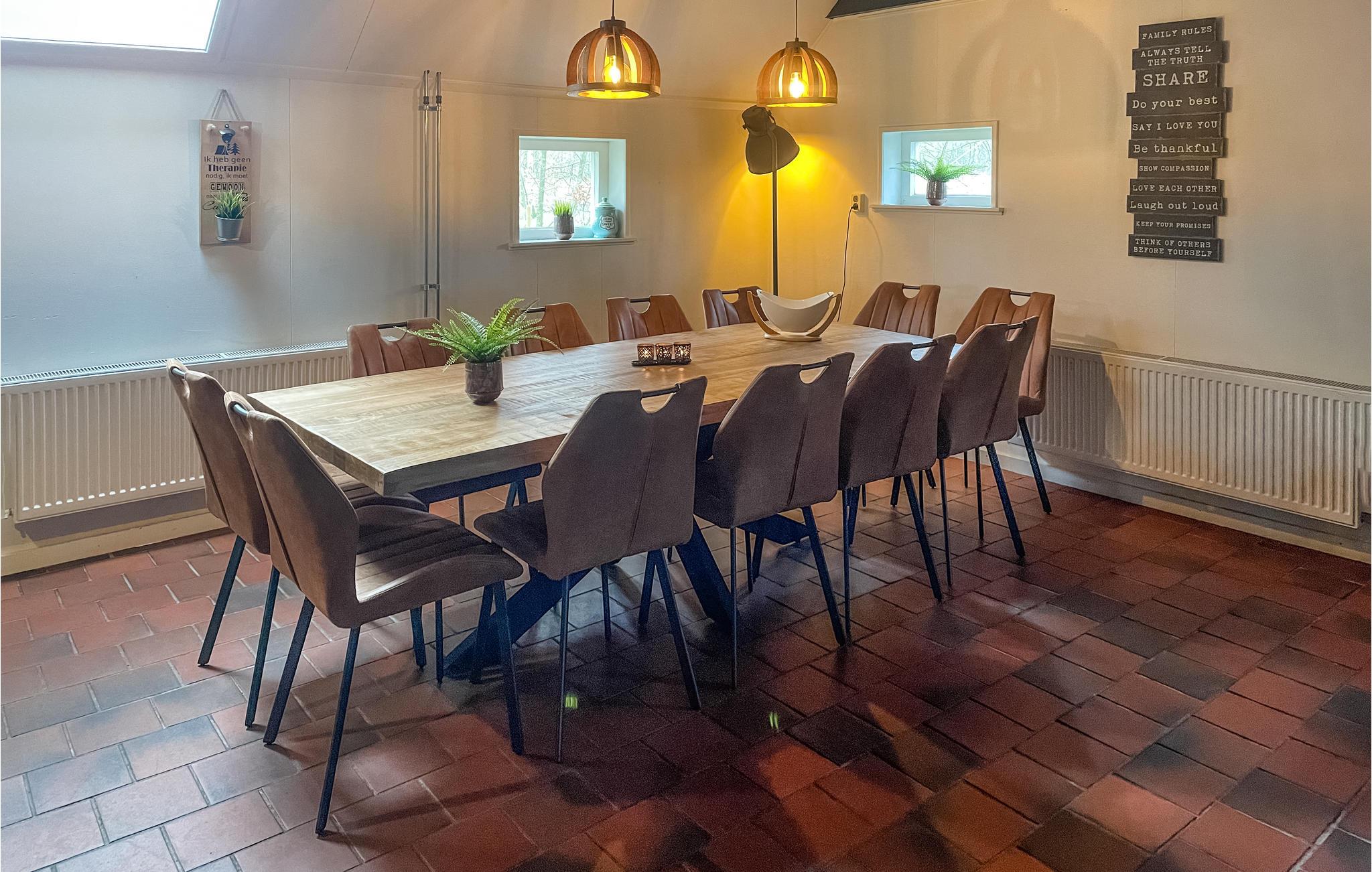Dette dejlige og rummelige hus i Schoonloo byder velkommen med en idyllisk beliggenhed og tilbyder perfekte forhold til en ferie med fantastiske naturoplevelser, skønne timer i det fri og kvalitetstid med brætspil, fælles madlavning, aftenkaffe og meget mere. Nyd et hyggeligt måltid ved det lange spisebord og glæd jer til dejlige aftener i den store sofakrog. På terrassen kan I slikke sol og tilberede lækkerier på grillen, mens jeres børn gynger og leger lystigt. Læn jer tilbage i vildmarksbadet og slip hverdagens stress til en vidunderlig udsigt over landskabet.