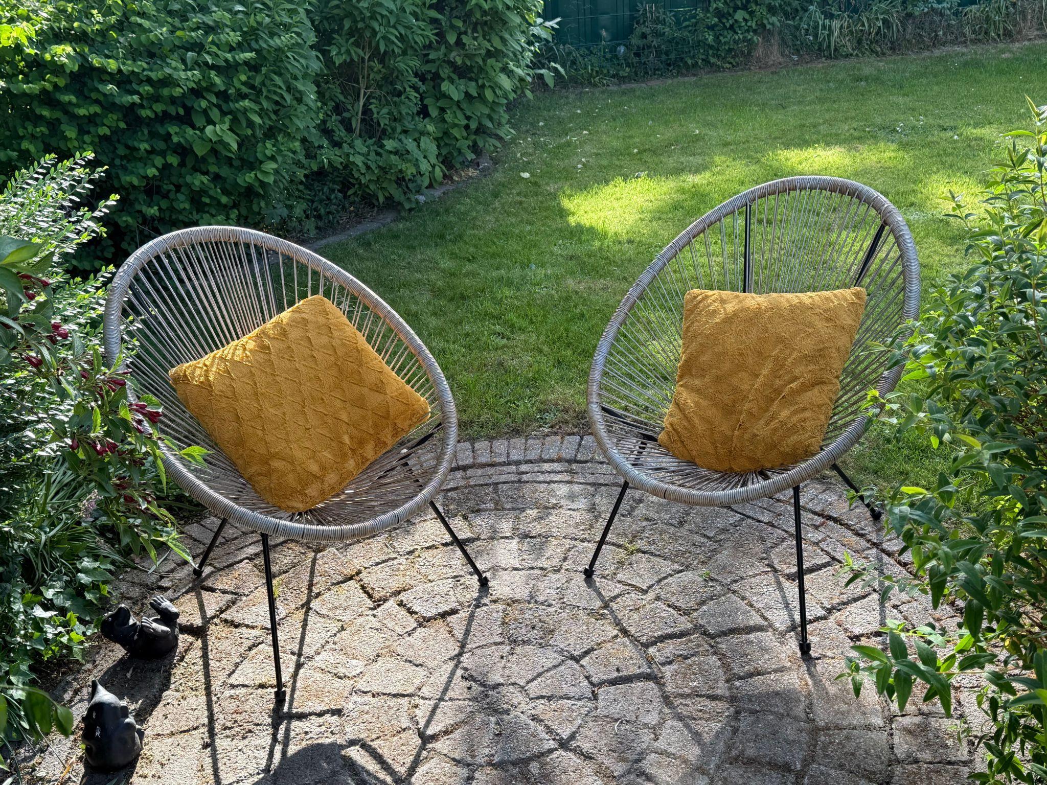 The outdoor area of our bungalow invites you to relax undisturbed with a fenced garden that cannot be seen from outside. Here you can enjoy the North Sea air on the terrace, which is furnished with a patio table and wooden benches. Three sun loungers, four garden chairs and two parasols offer additional comfort, and a charcoal barbecue is available for cosy barbecue evenings. Children and dogs can roam freely and safely in the garden, making our bungalow the ideal choice for pet owners.