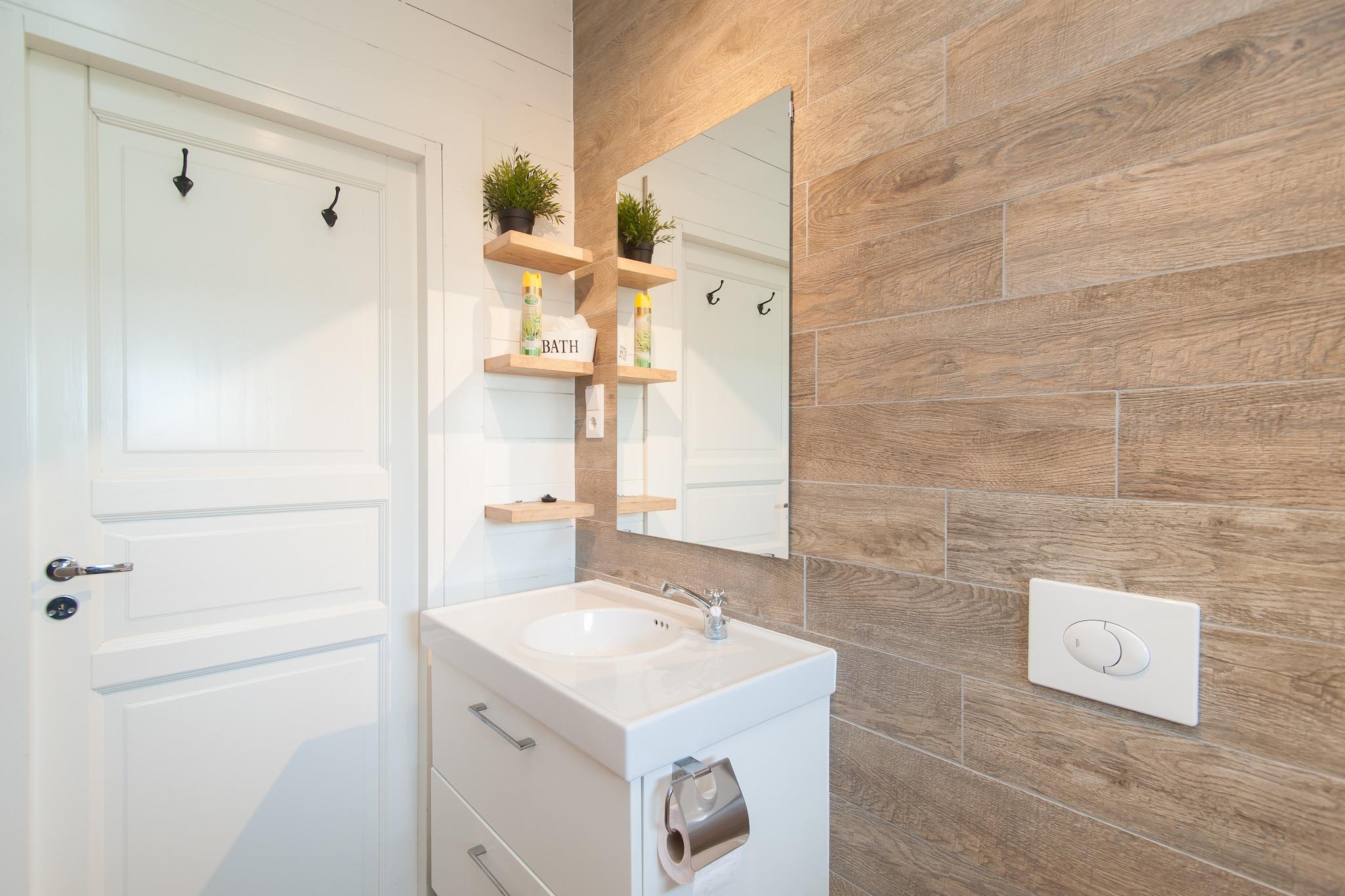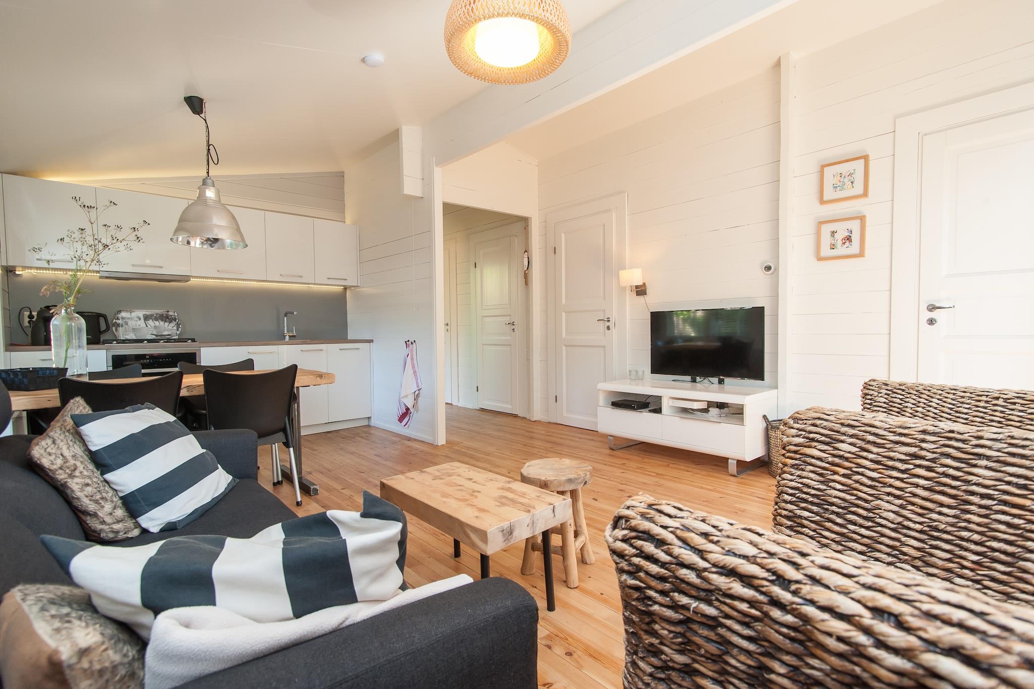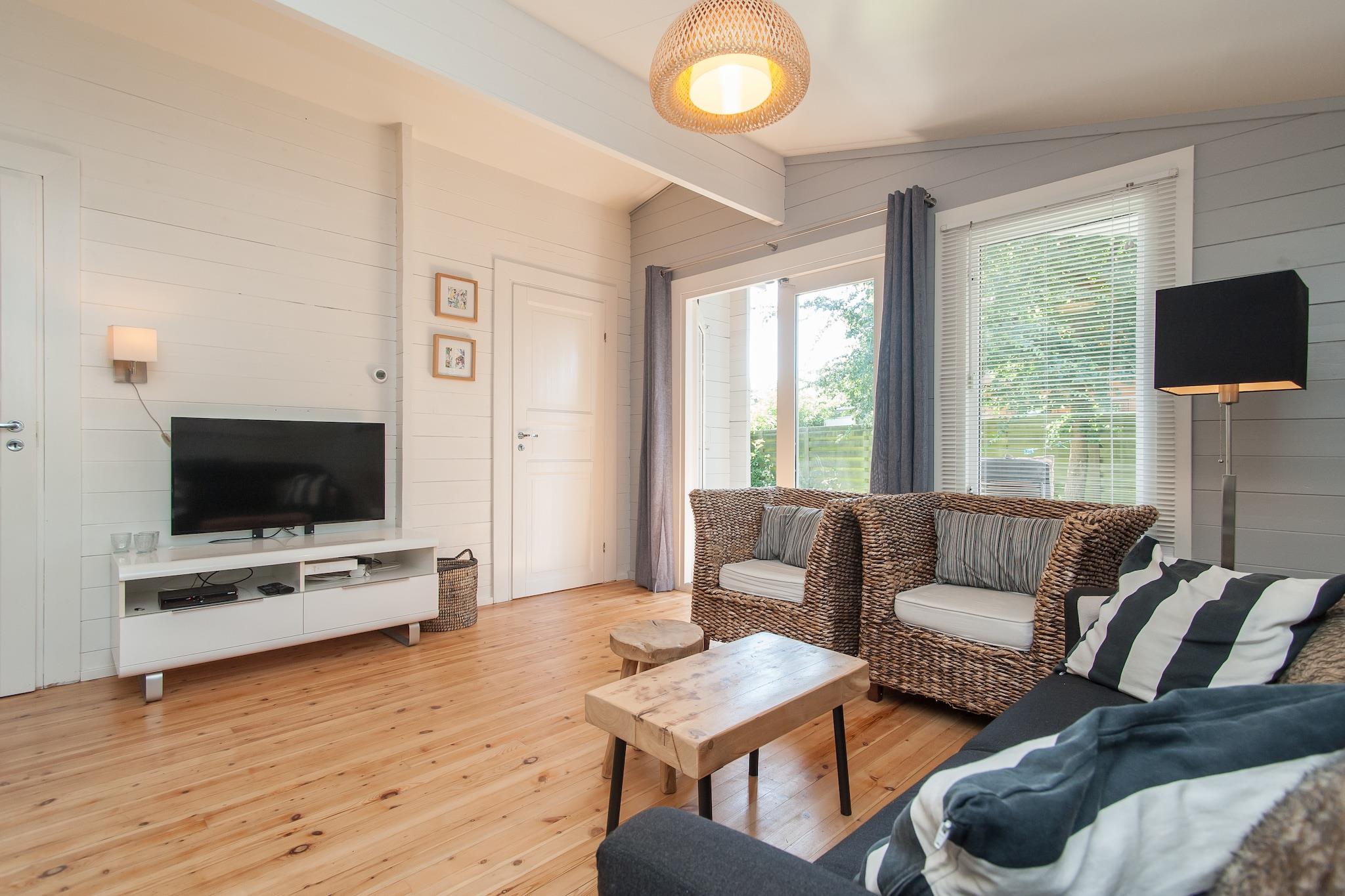 Stueetage: (åbent køkken(elkedel, kaffemaskine, combi-mikroovn, opvaskemaskine , køleskab), soveværelse(dobbeltseng(160 x 200 cm)), soveværelse(køjeseng(90 x 200 cm)), badeværelse(badekar med bruser, håndvask, toilet)) stue / spisestue(Fjernsyn(fladskærm), spisebord(4 personer), sofahjørne(4 personer)), vaskemaskine