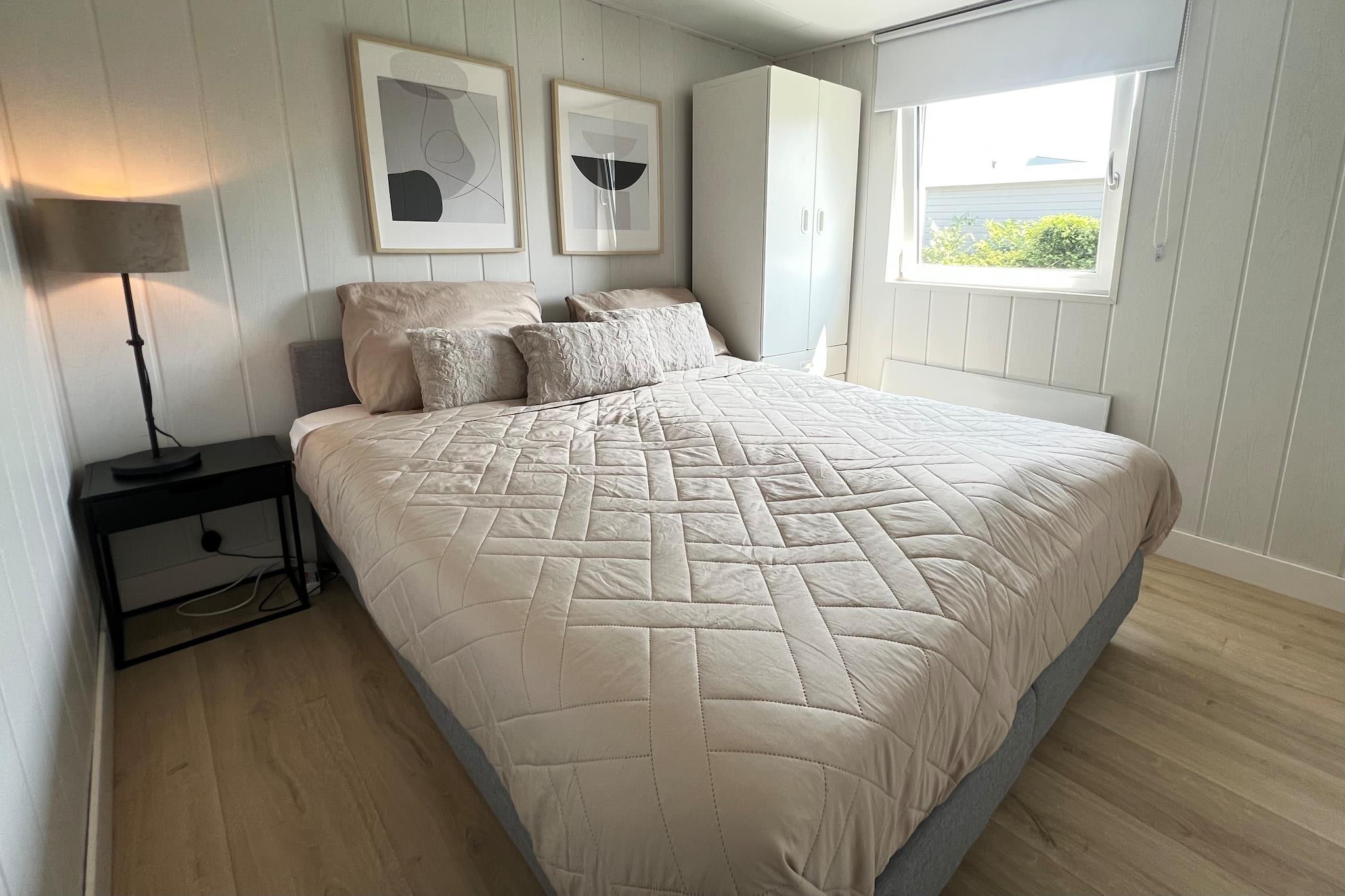 Denne lyse og moderne bungalow med 3 soveværelser blev nyrenoveret i 2025 og tilbyder en fredelig kystferie med stil og masser af plads. Beliggende i udkanten af den eftertragtede Eureka-park, byder den på en betagende udsigt over det åbne landskab og ligger kun 1,5 km fra den brede sandstrand i Sint Maartenszee. Med en rummelig planløsning, stor privat have og eksklusive faciliteter er den perfekt til en afslappende familieferie ved havet. Indenfor har den 100 m² store bungalow en lys stue med PVC-gulv, komfortable siddepladser og et Smart TV med hollandske og tyske kanaler. Det helt nye åbne køkken er fuldt udstyret med induktionskogeplade, ovn, mikrobølgeovn, opvaskemaskine, stort køleskab med fryseskuffer og endda en vaskemaskine. Vælg mellem en Nespresso- eller filterkaffemaskine, og nyd din morgenkaffe, mens du kigger ud over forårsblomstermarkerne. Der er tre soveværelser, hver med to boxmadrasser (80x200 cm) og rigelig skabsplads. Alle vinduer er udstyret med insektnet for en god nats søvn. Den 400 m² store have strækker sig rundt om huset og tilbyder sol, skygge, flere terrasser og fuldstændig privatliv. Et sikkert skur er tilgængeligt til opbevaring af cykler og opladning af elcykler. Gratis WiFi og parkering til to biler er inkluderet. Kæledyr og ungdomsgrupper er ikke tilladt. Linned er ikke standard, men kan tilføjes ved booking. Ugentlige priser starter ved EURO1250. i højsæsonen. Kan lejes i påske-, sommer- og efterårsferien – book tidligt for at sikre dine datoer på dette charmerende tilflugtssted.