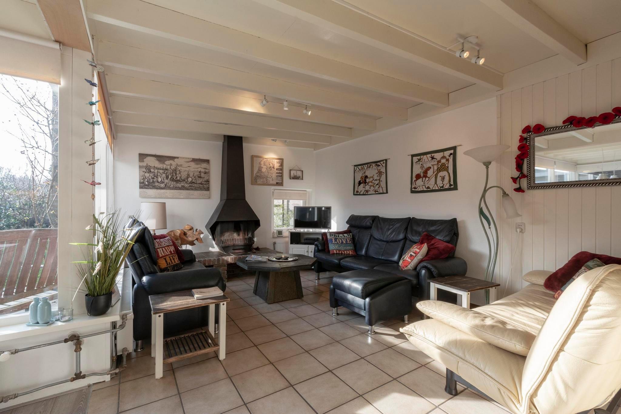 Stueetage: (Stue(Fjernsyn(fladskærm, Smart-TV), pejs, sofahjørne), åbent køkken(spisebord, kogeplade(Komfur med fire kogeplader, gas), elkedel, brødrister, emhætte, kaffemaskine(kaffepude), combi-mikroovn, opvaskemaskine , køle-fryseskab, (), ()), soveværelse(dobbeltseng), soveværelse(enkeltseng), soveværelse(3-etage-køjeseng), badeværelse(bruser, håndvask, toilet)) Internetadgang, kakkelovn(træ), varme(central), terrasse, have, cykelopbevaring, havemøbler, solstole, liggestole, Parasol, tørreskab